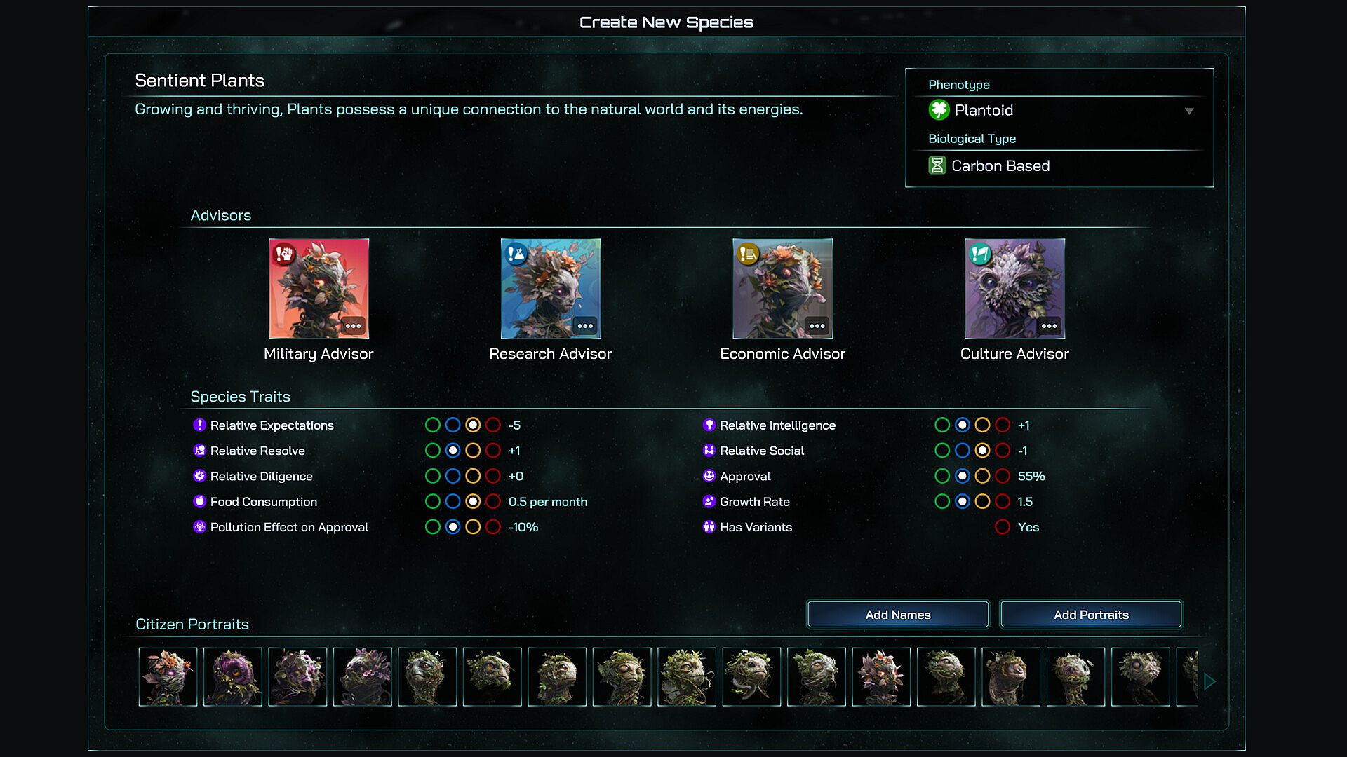 - Create and Customize: Design your species with specific strengths and weaknesses, choose their advisor pictures, and determine what their citizens look like.