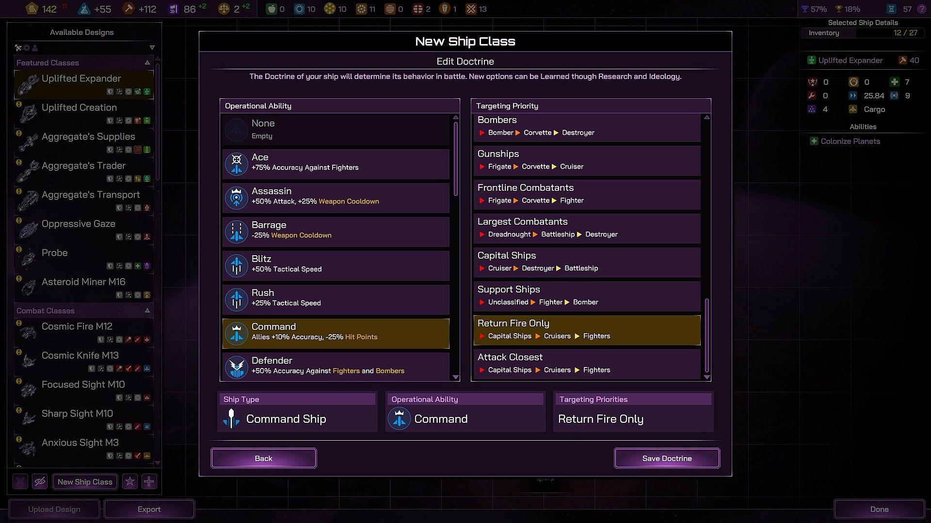 • Operational Abilities and Targeting Priorities: Customize your ship classes further with 14 new operational abilities and expanded targeting priorities. These allow for refined control over your fleet's actions in battle, enabling sophisticated strategies against diverse enemy formations.