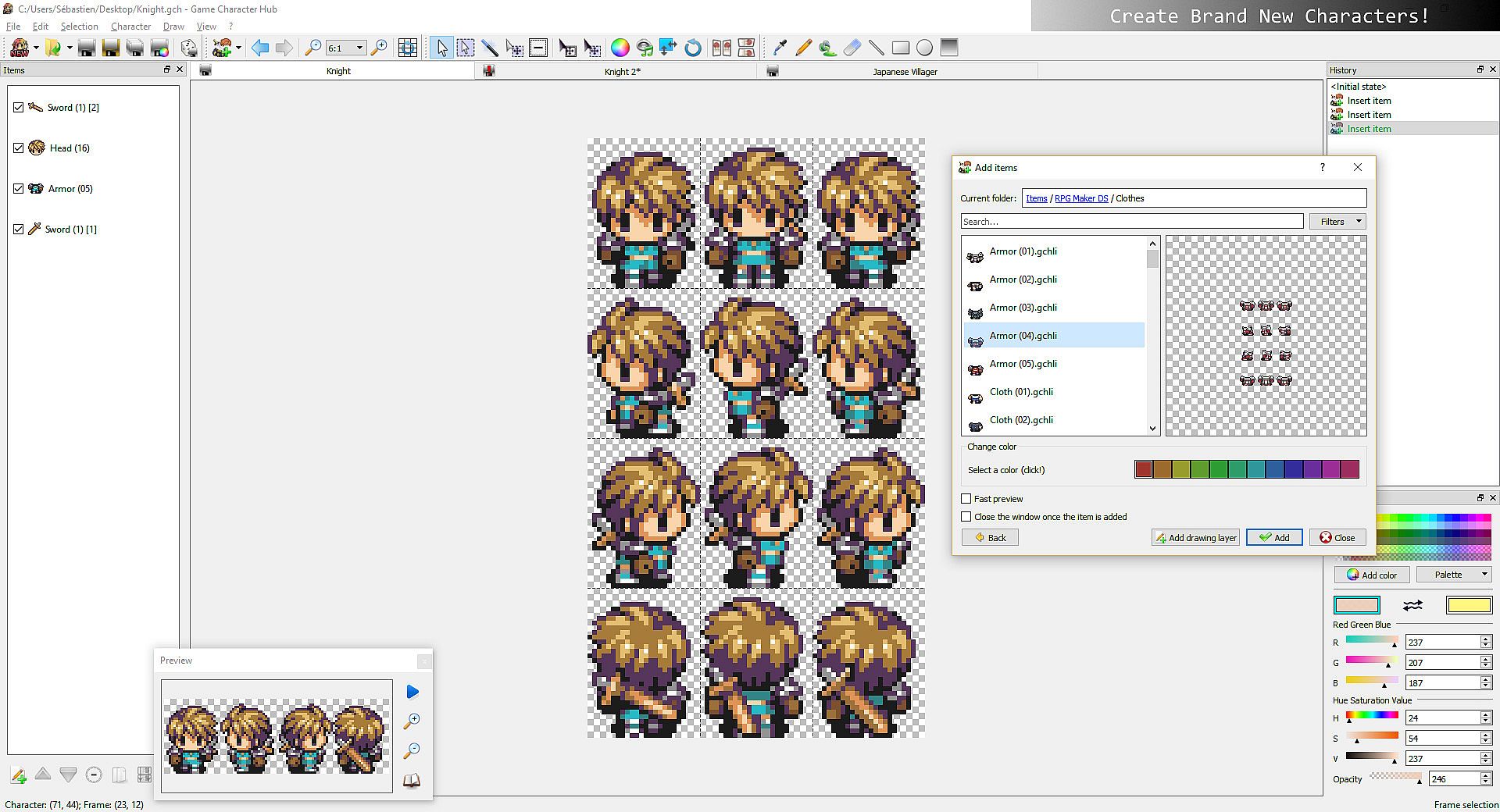 We've taken the original resources and modified them (when necessary) to work perfectly with Game Character Hub. Enjoy the flexible layer system, real-time animation previews and the powerful character generators that comes with Game Character Hub while you create new characters in a retro style!