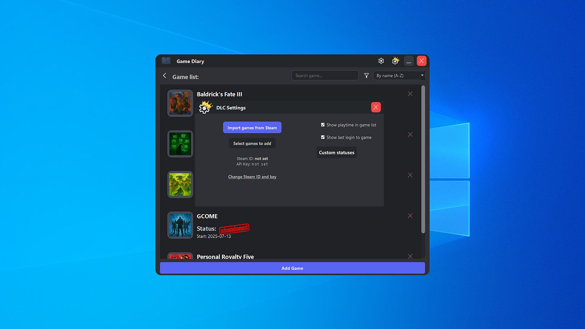 Game Diary Plus is an add-on that extends the capabilities of your Game Diary, allowing you to organize and track your gaming experience even more conveniently.