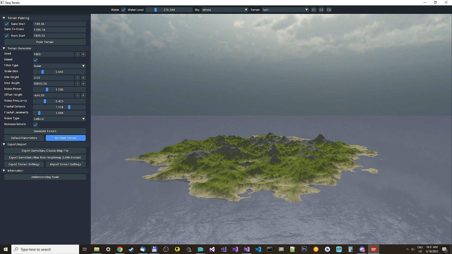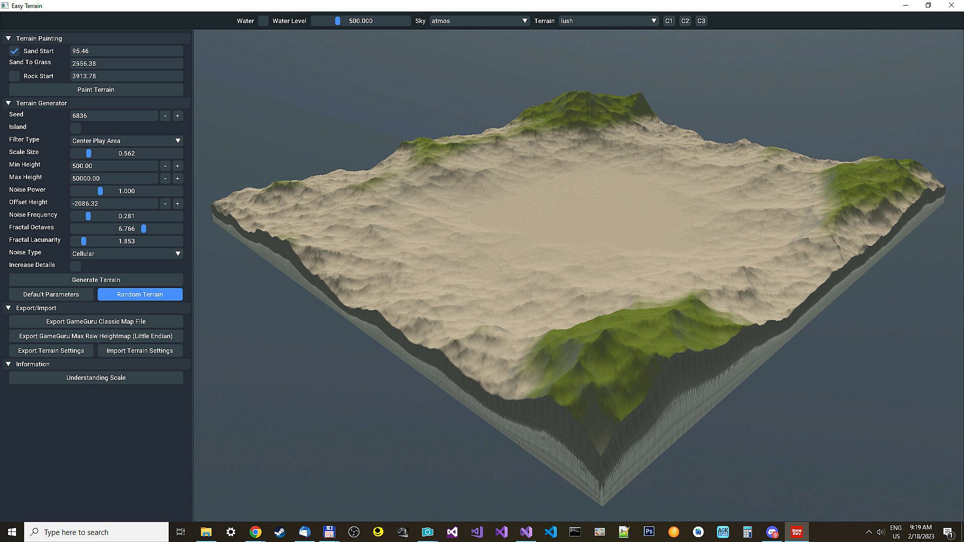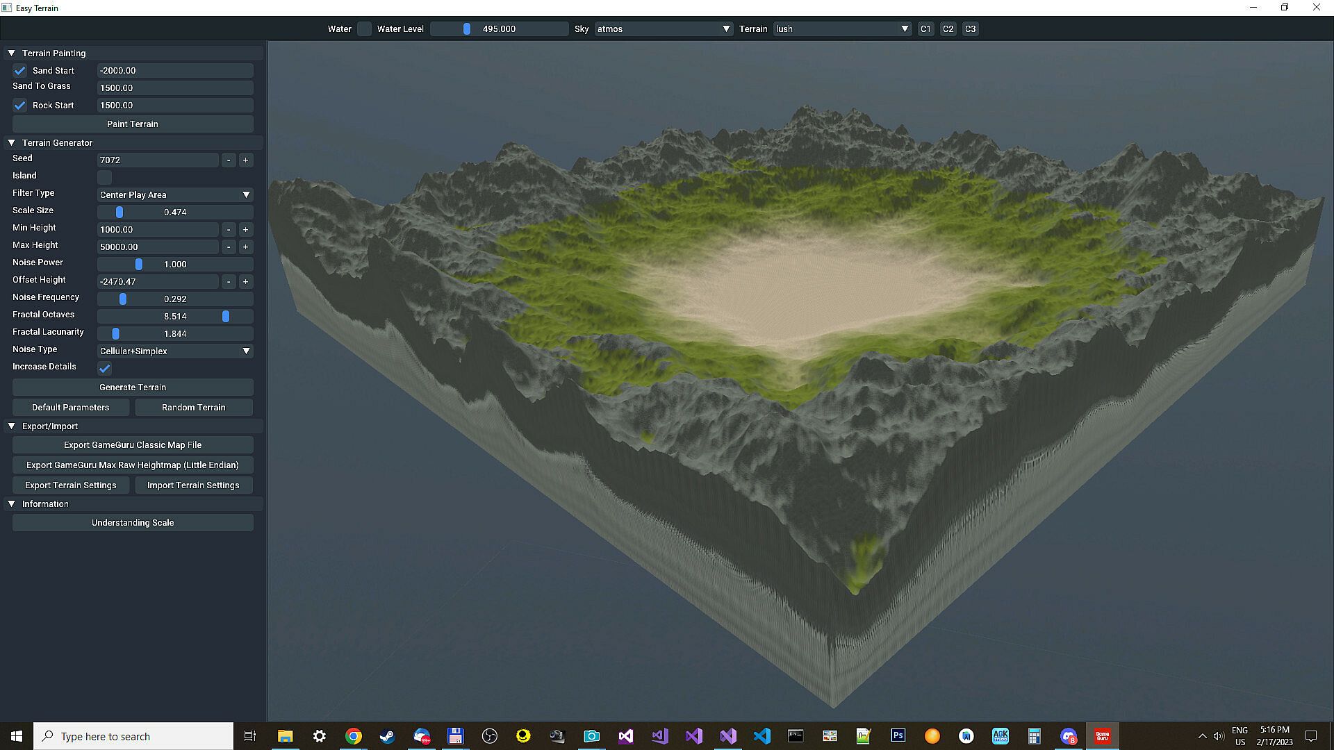 The GameGuru Classic Easy Terrain Tool allows you to make beautiful procedural landscapes/terrains for your levels.