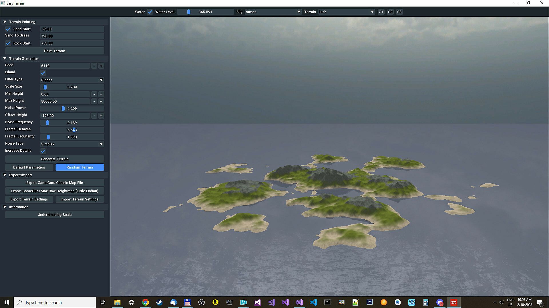 You can export maps (.fpm) directly so they can be loaded into GameGuru Classic to start your level creation with a completed terrain, or export raw Heightmaps (Little Endian) that are compatible with loading into the GameGuru MAX terrain generator for more terrain options. Additionally, you can export Heightmap In PNG Format, for use in other engines that support Heightmap import.