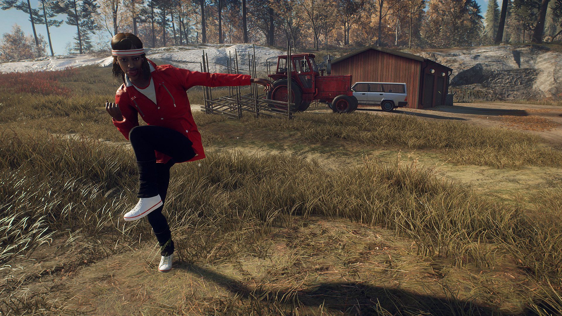 Adorn your character with colorful 80s-inspired outfits in this action adventure expansion for PC. Mix and match four distinct sets-Timeless for guerrilla style with voluminous hair and vests, Swedish Easter for folklore flair with feathered hats and rosy cheeks, Workout for leg warmers and sweatbands, and Rainproof for vibrant yellow jackets and boots. These let you stand out while battling machines in dreary Swedish weather or spring sunshine. Unlock six fresh emotes to groove with boombox beats, including Rickroll, Chicken Dance, Skip Pop, and Aerobics moves, plus bunny ears and cheers. Dance like a true Swede amid hostile robots. Fans of stylish survival action who love customizing looks and expressive animations will enjoy the retro flair.