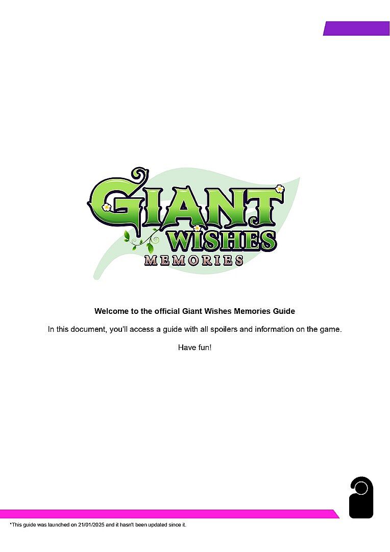 Giant Wishes: Memories - Guide is a spoiler document with all the detailed information you need to complete the game and unlock all Steam achievements.