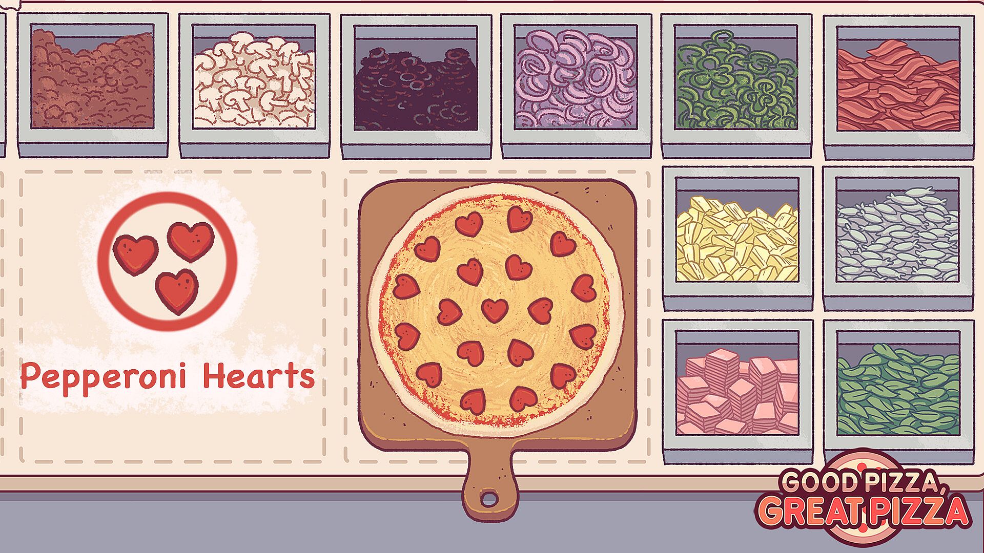 Good Pizza, Great Pizza - Romantic Topping Skins - Valentines 2023 - about the game