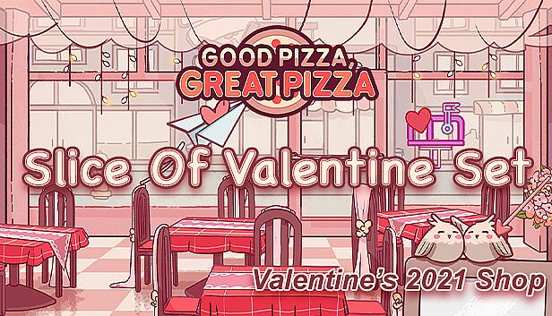 Before you start looking for a cheap Good Pizza, Great Pizza - Slice Of Valentine Set - Valentines 2021 Shop key, check the essentials. Developed by TapBlaze. Published by TapBlaze. PC released date: 08 Feb 2023. Genres: Indie, Casual, Simulation. Categories: Family Sharing, Steam Trading Cards, Single-player, Downloadable Content, Steam Achievements, Steam Leaderboards.