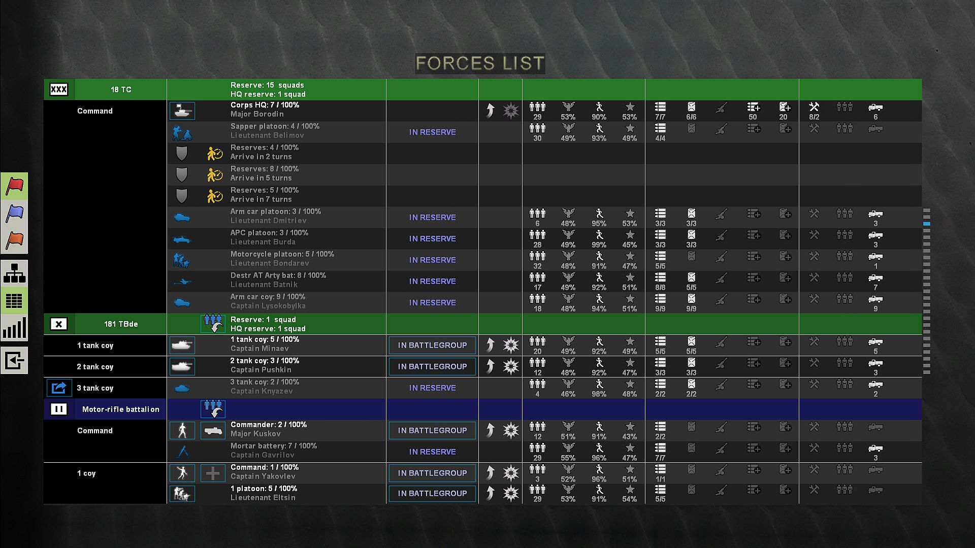 - Historical organizational structure of units at the time of the offensive.