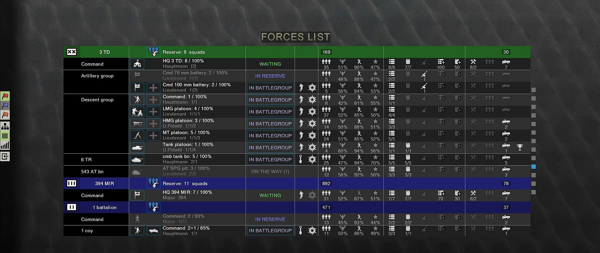 - Historical organizational structure of units at the time of the offensive.