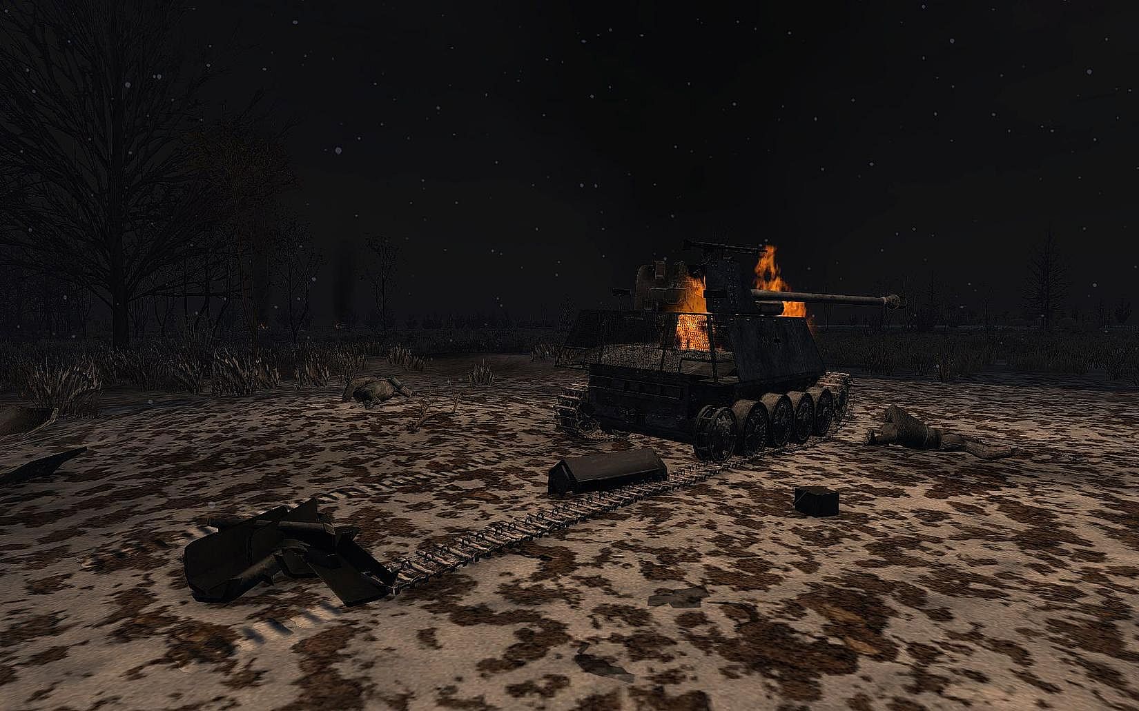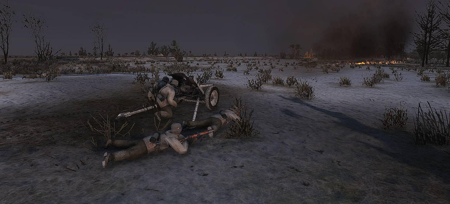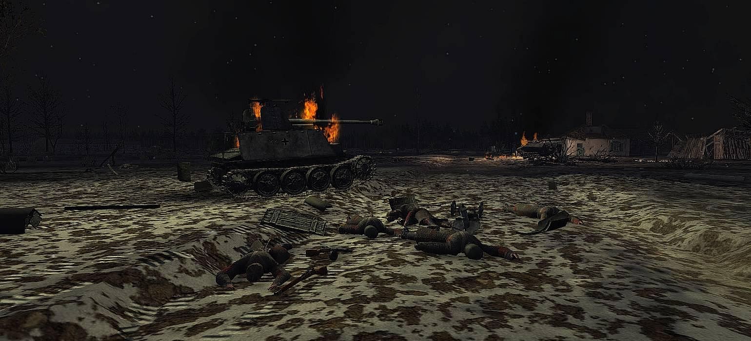 Early spring 1943, the advancing German troops of the 6th PzDiv broke the Russian first defense line and now are 30 km near the southern outskirts of Kharkov. The second defense line is located along the Mzha river and is additionally reinforced with the 1st Czechoslovak battalion. Lieutenant-General Rybalko, commander of the 3rd Tank Army, ordered to prevent enemy from crossing the Mzha river. The 1st reinforced Czechoslovak battalion took up defensive positions on the line Mirgorody (the 3rd coy) - Sokolovo (the 1st coy) - Artyukhovka (the 2nd coy). Battalion of 182 gds. Rifle Division, numbering ~30 soldiers, took up defensive positions on the left flank. Troops of 8 Arty Division, 1245 Anti-tank Arty Regiment and 131 gds. Arty Regiment are providing covering fire. On March 7, reconnaissance revealed concentration of German tanks, artillery and infantry in the vicinity of Borki village and in the forest to the south of Sokolovo...