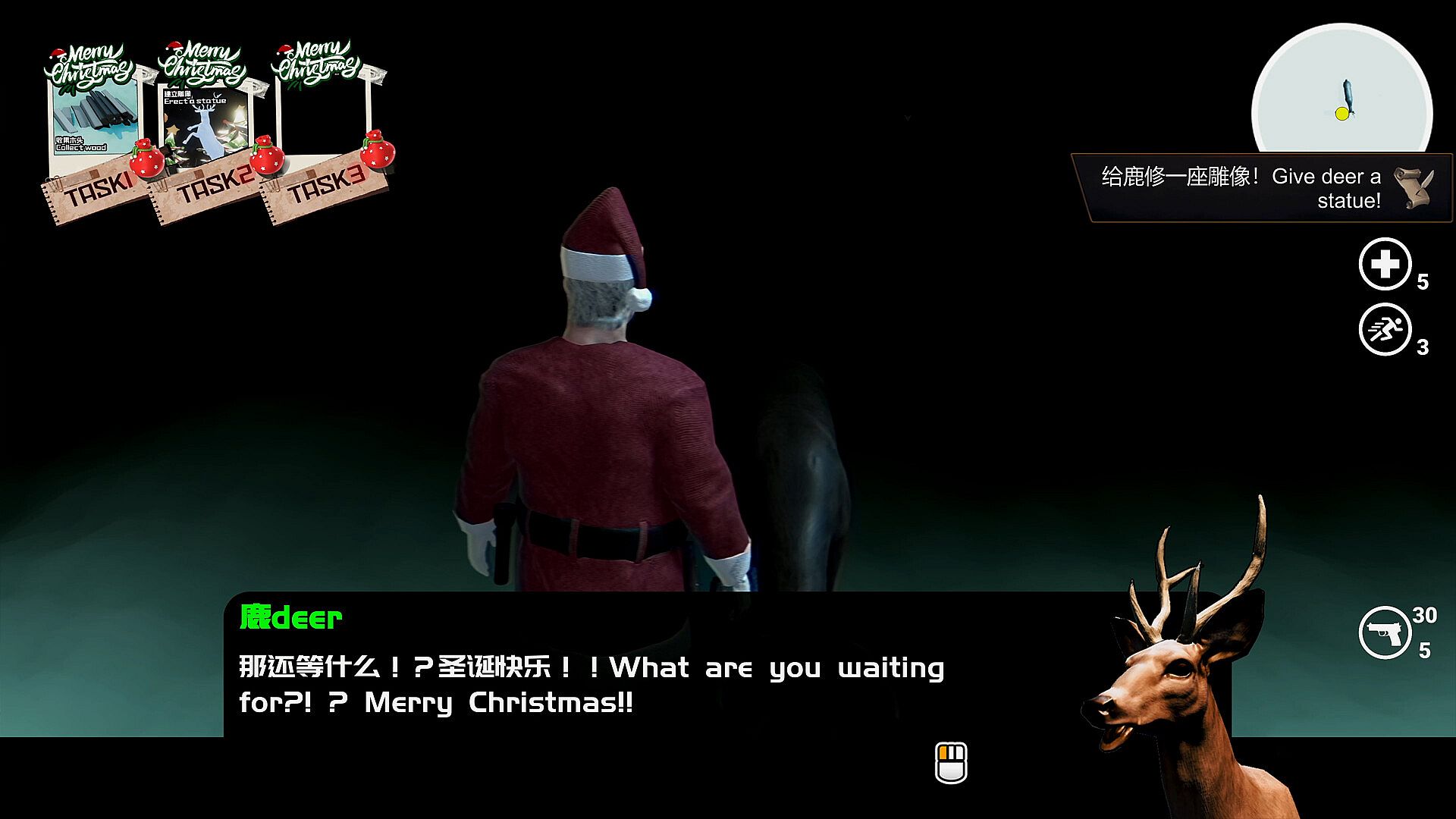 You will experience a fun little story to help Santa find his old friend, our Mr. Deer!