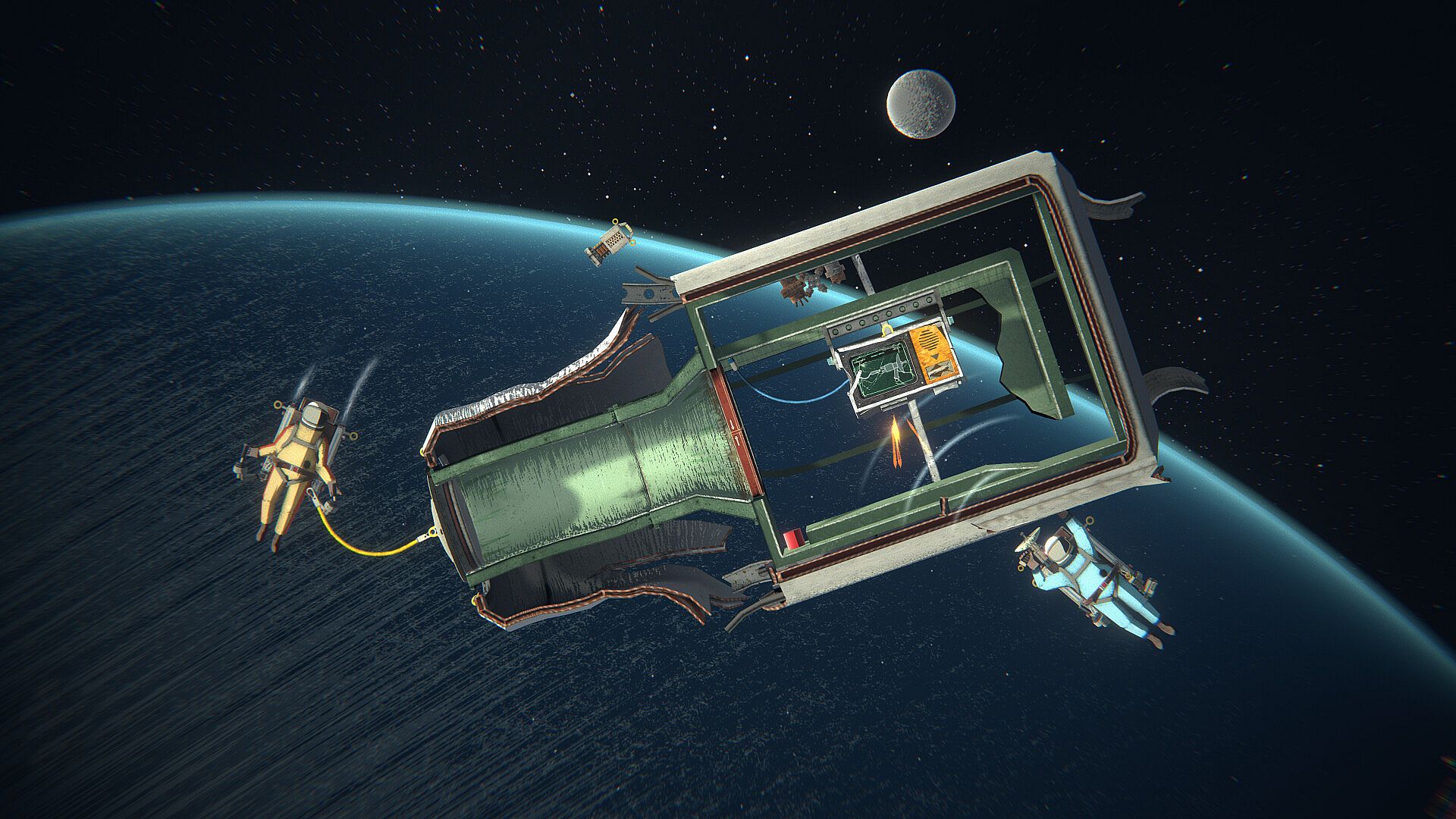 Equipped with an array of fancy new tools and devices, you’ll have to repair your debris-damaged station and dispose of hazardous scrap.