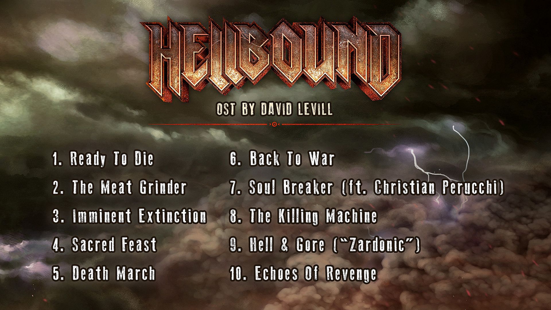 - Soundtrack: 10 extended version songs from Hellbound, composed by David Levill. Including classic Ready to Die, Soul Breaker (ft. Christian Perucchi) and Hell & Gore (by Federico Ágreda "Zardonic"). Full tracklist: