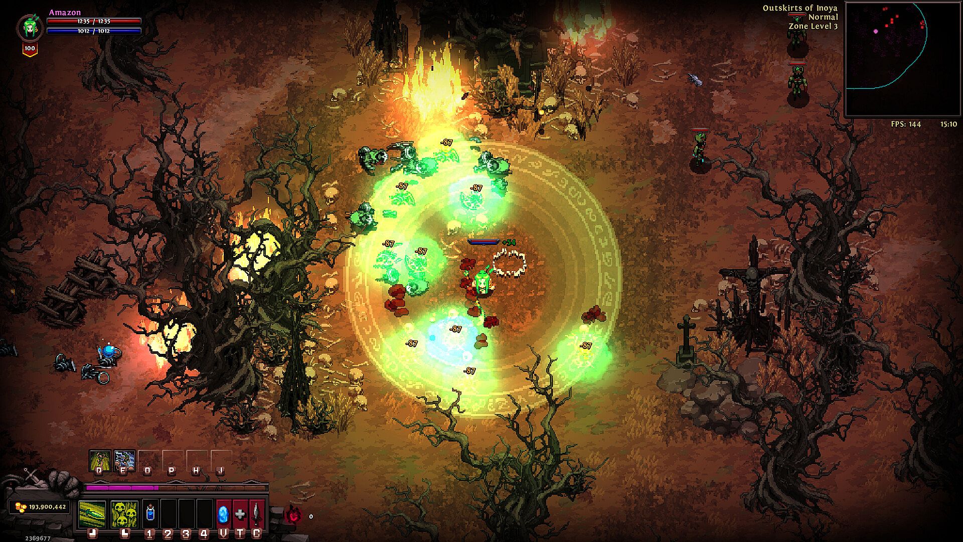 The Amazon is a mobile fighter hailing from the jungle, using her range to dominate the battlefield. She wields the powers of poison and lightning, embodying the perfect warrior for hyper-fast area clearing, delivering certain death to her enemies.
