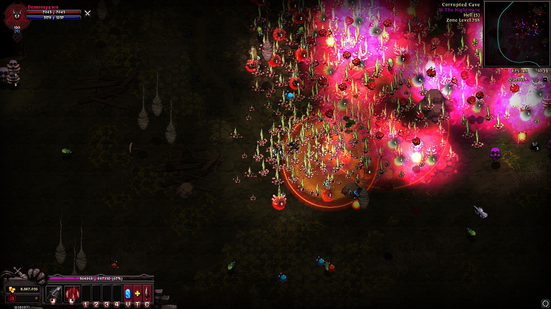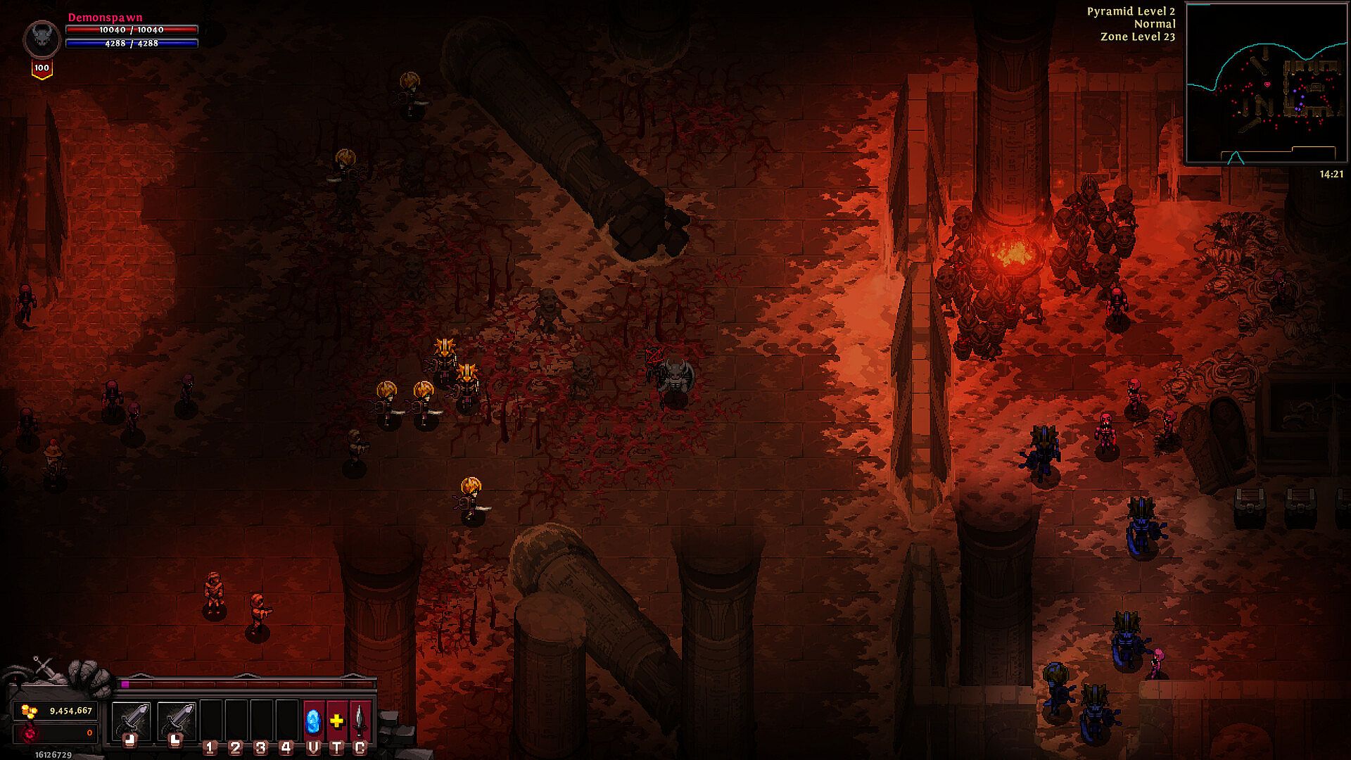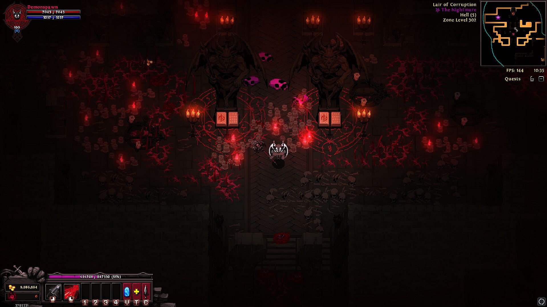 The Demonspawn is a long-range caster specializing in traditional spell-casting, ranging from sharp bones and bone fragments to blood bolts, blood demons, and a massive blood surge, all while keeping a safe distance from enemies.