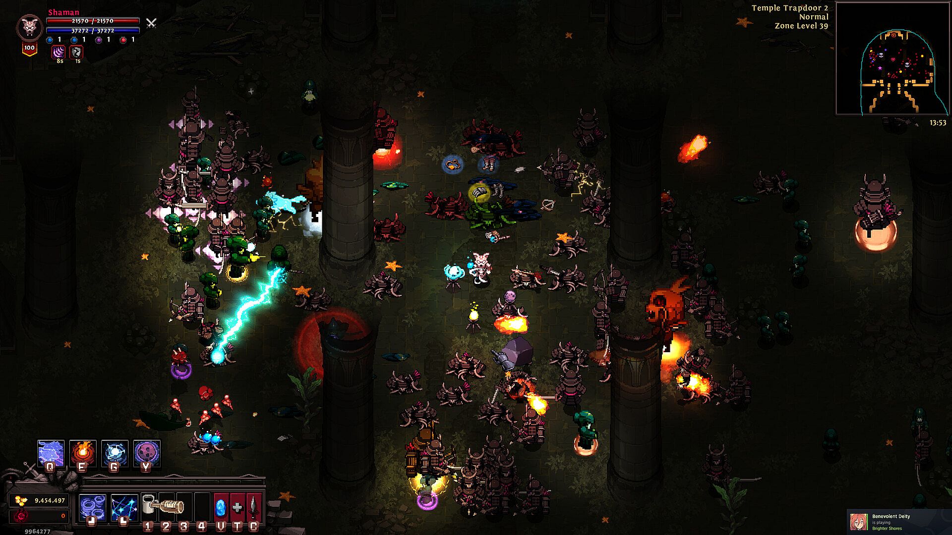 The Shaman offers diverse playstyles, from continuously conjuring twisters and summoning meteor storms to taking a more passive approach by letting totems or spirit wolves do the fighting for him.