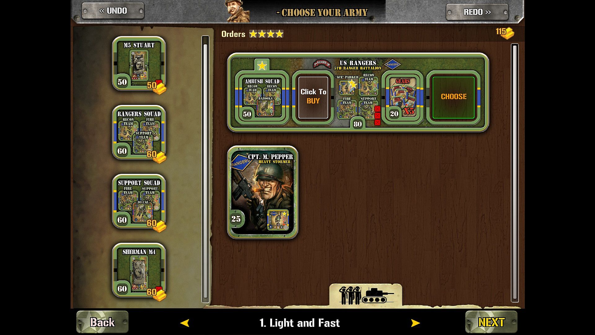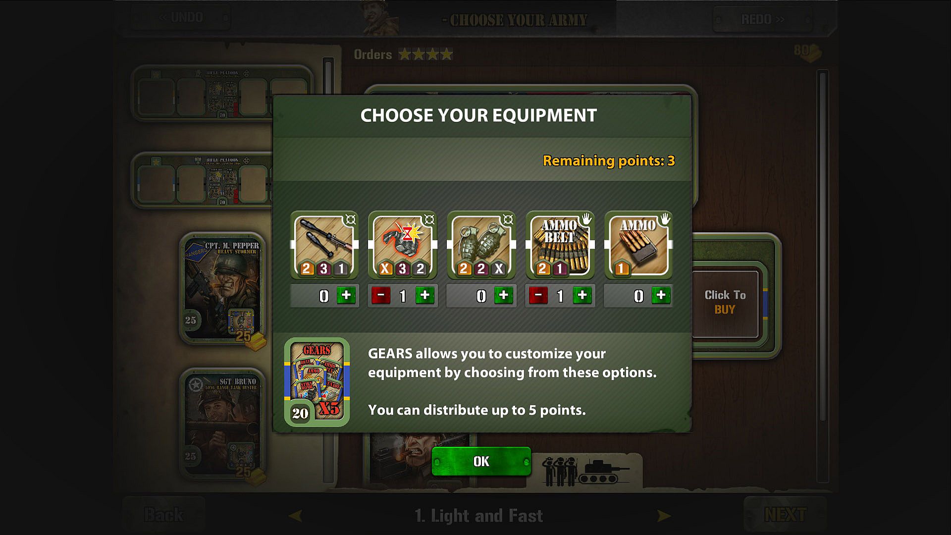 • 4 Recruitment Options: You are able to raise up to three Rangers squads and to provide them with Gear, a customizable selection of 4 different weapons and equipment.