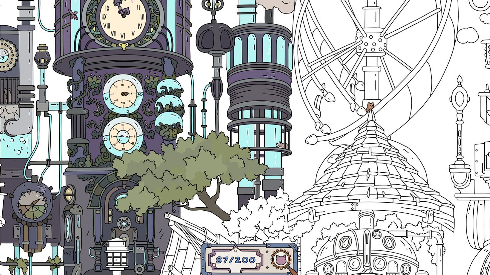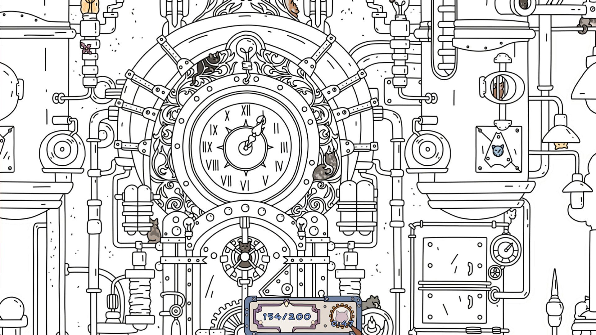 Explore the amazing hand-drawn steampunk world and find cleverly hidden cute cats. Nice background music will provide complete relaxation) Suitable for the whole family)