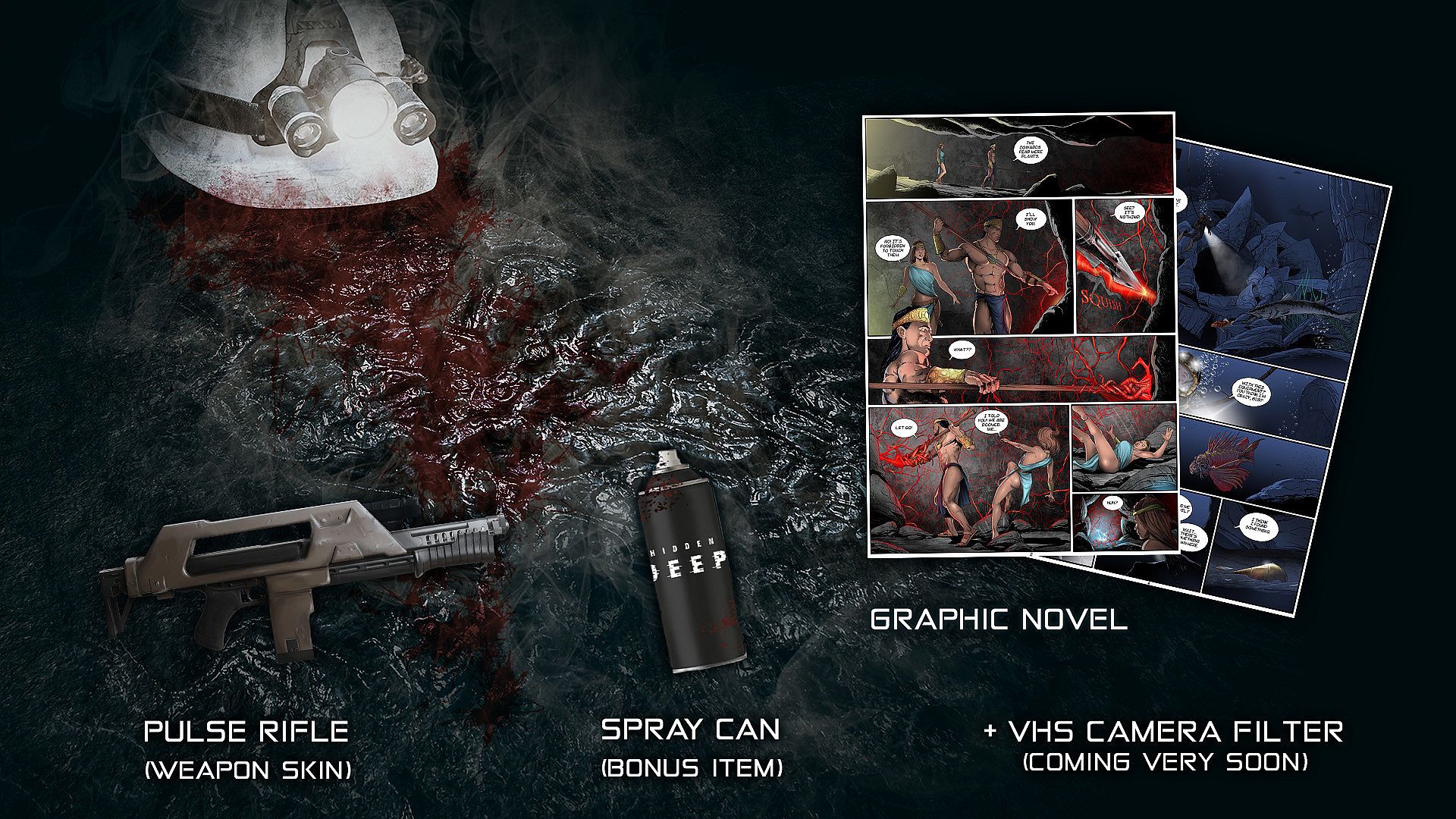 Show your support for the indie developer behind Hidden Deep with this collection of exclusive in-game items and extras. Players gain access to a unique rifle skin, a spray can for adding decals to cave walls, and an optional VHS camera filter that delivers an oldschool vibe. The pack also includes an 18-page hand-illustrated comic revealing backstory from the Hidden Deep universe. This action indie adventure content suits fans who enjoy personalizing their experience in cave environments and exploring added lore through visuals.