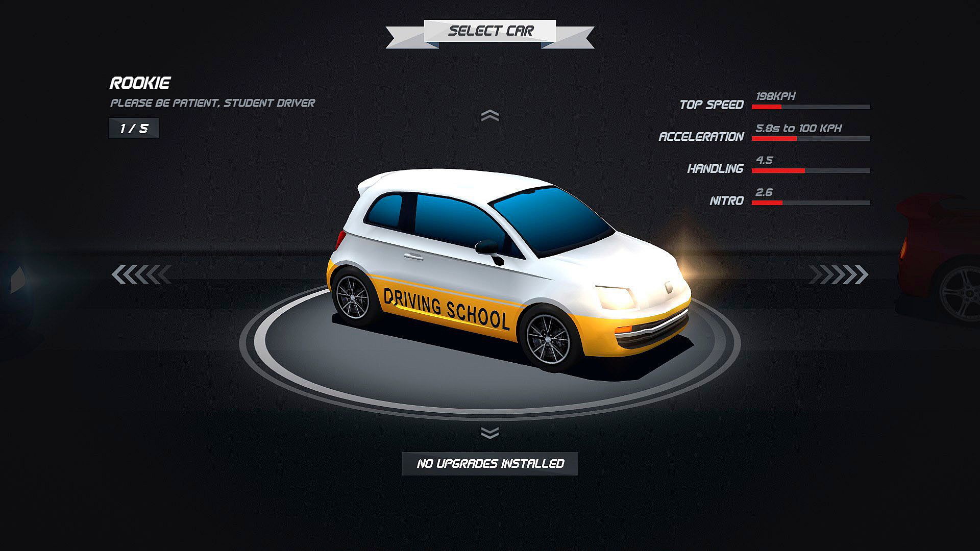 Rookie, a brand new car that is perfect for players who don’t have much experience with racing games. It offers great handling and receives automatic upgrades as the player progresses in the campaign.