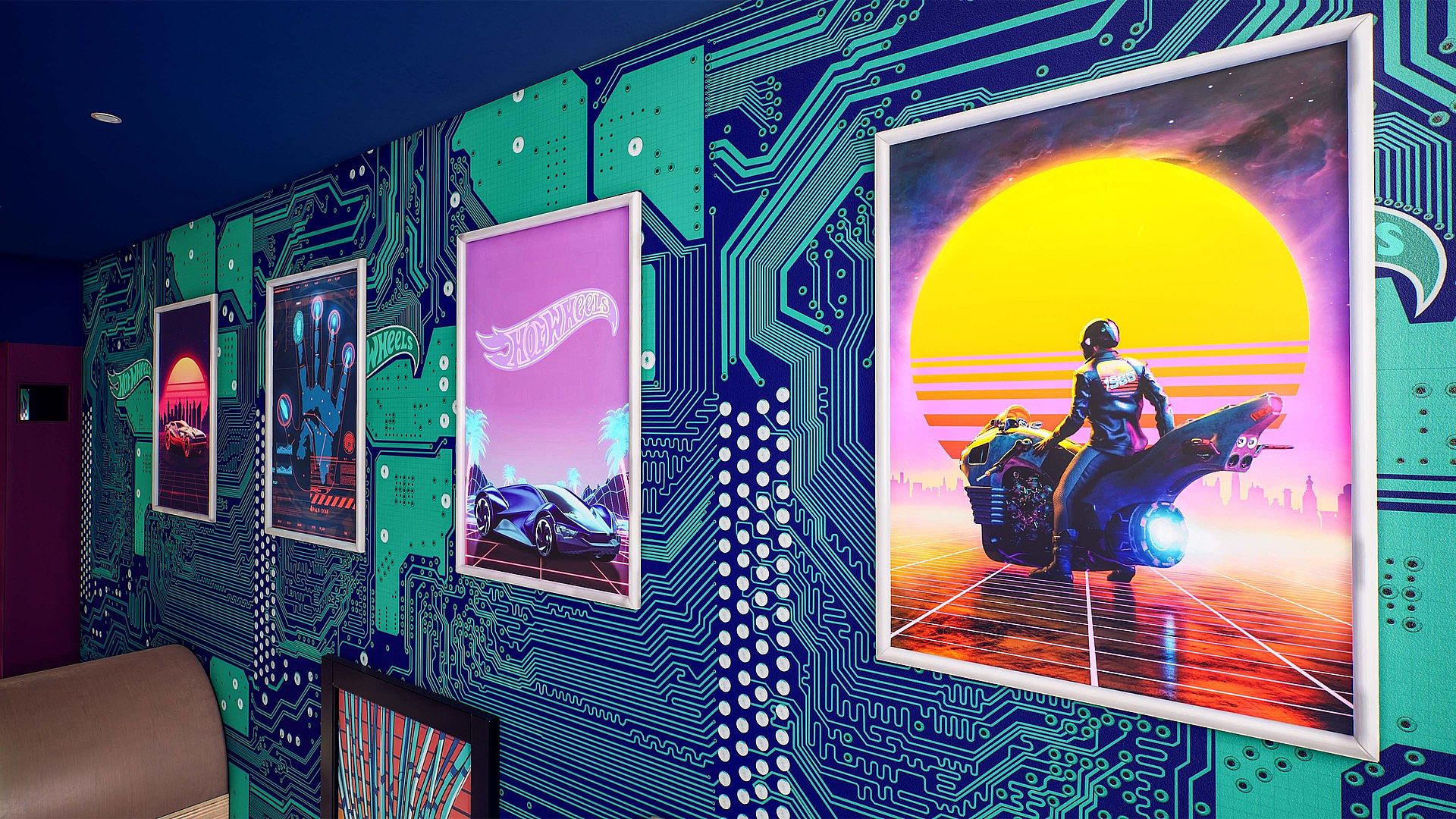 Decorate walls, floors, doors and couch with super cool posters and graphics, extreme colors and futuristic atmospheres. Enjoy new science-fiction style races inside your own Basement!