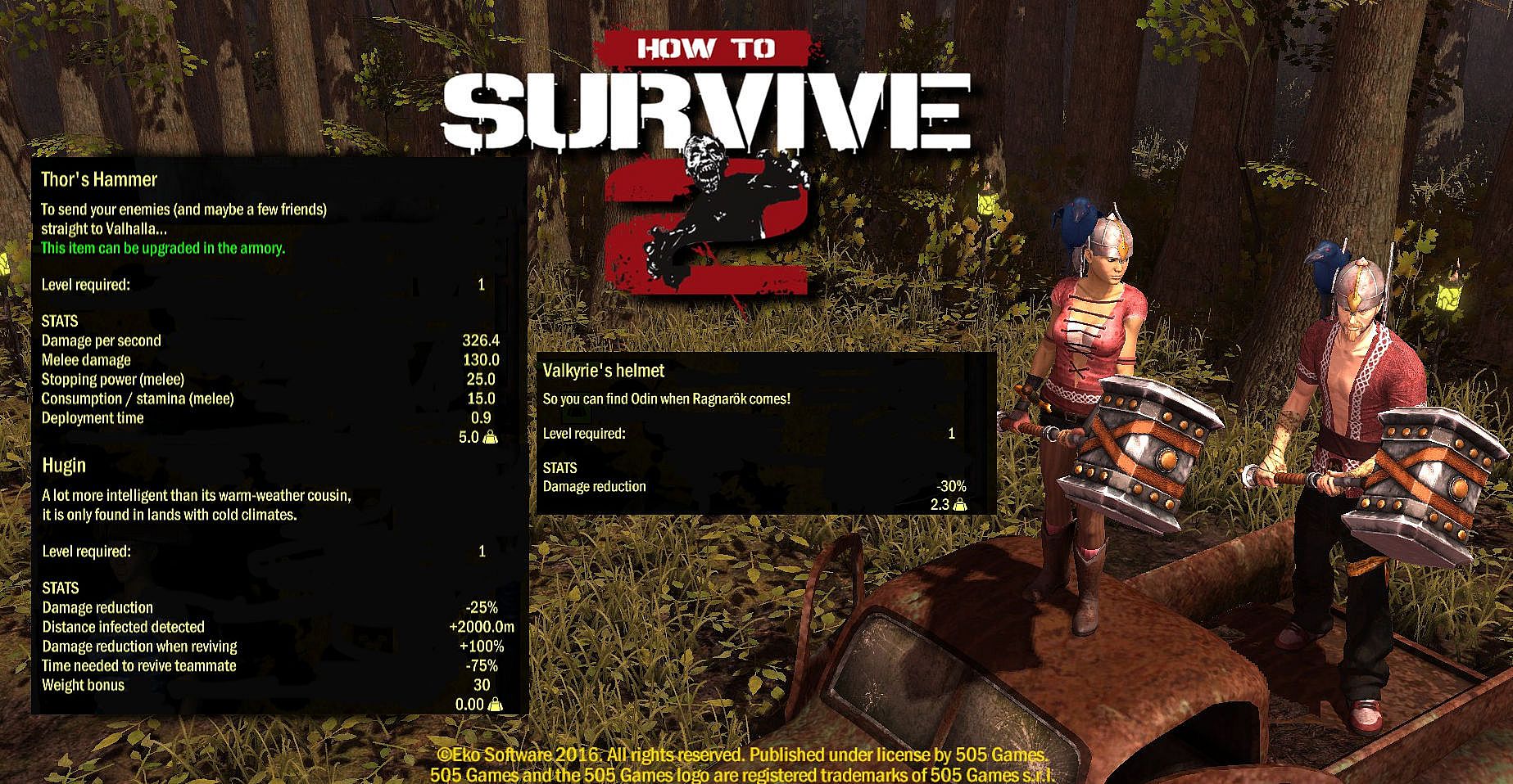 Before you start looking for a cheap How To Survive 2 - Norse God Skin Pack CD Key, take a moment to check the essentials. Developed by Eko Software. Published by 505 Games. PC released date: 27 Oct 2016. Genres: Action, RPG, Adventure. Categories: Multi-player, Online PvP, Shared/Split Screen PvP, Family Sharing, Co-op, Steam Trading Cards, Single-player, Downloadable Content, Steam Achievements, Full controller support, Steam Cloud, Shared/Split Screen Co-op, Shared/Split Screen, Online Co-op, Steam Leaderboards.