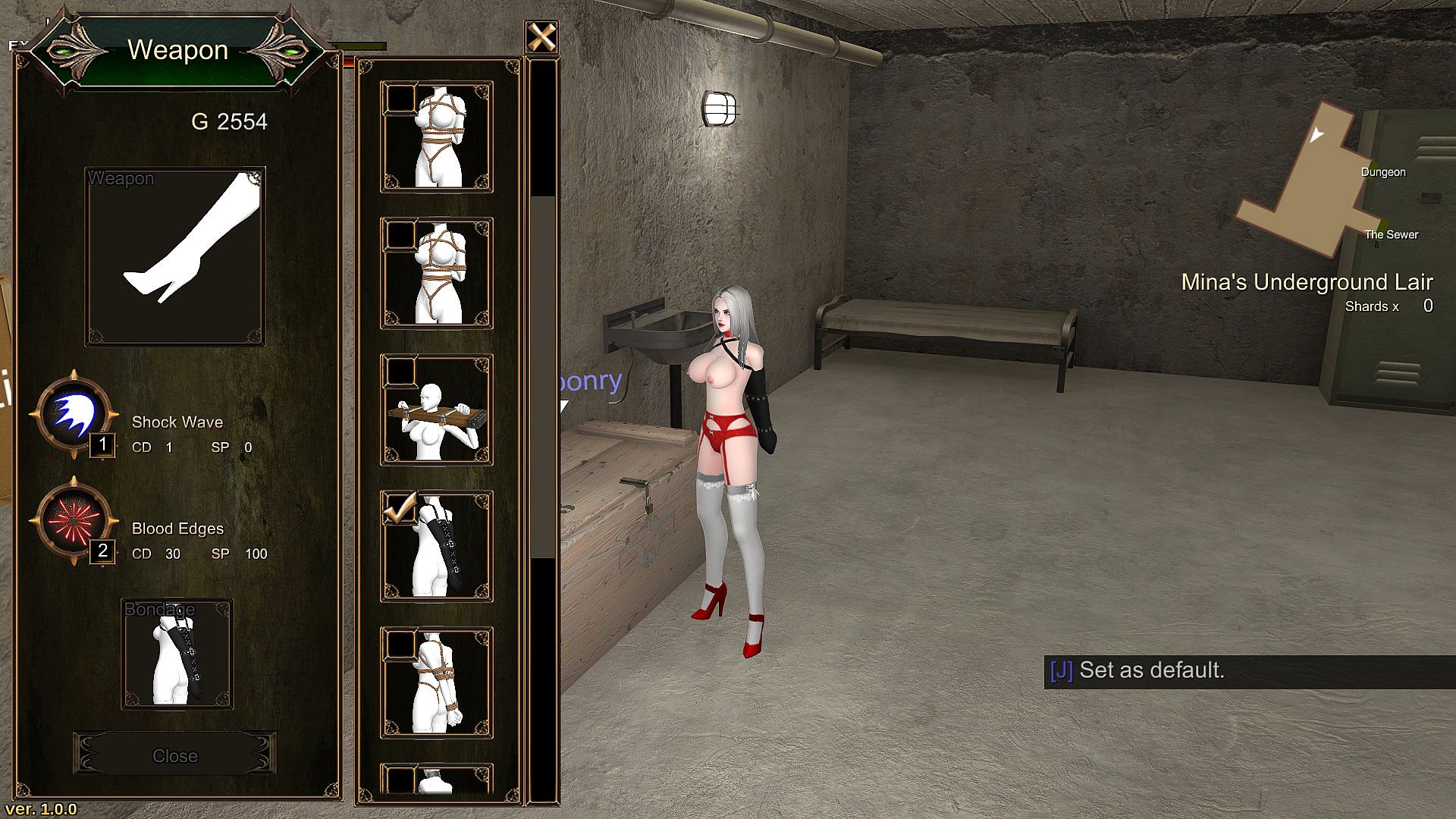 This adult-only expansion enhances the action indie game with exclusive mature content. Players unlock topless lingerie and bondage gear options. They can also switch the captive's costume for varied visuals. The core loop centers on customizing appearances in this PC title. Gear changes add layers to captive interactions. It suits fans of indie action games seeking adult-themed personalization.