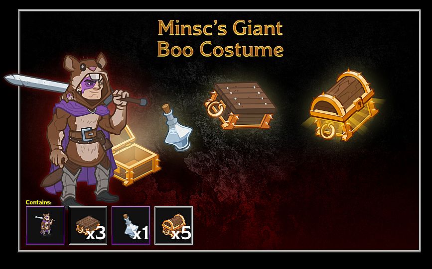 Outfits are alternate looks for your Champions that you can swap in and out whenever you want! Minsc has been known to dress up as his favourite hero, Boo, whenever he visits sick kids at the local temples.