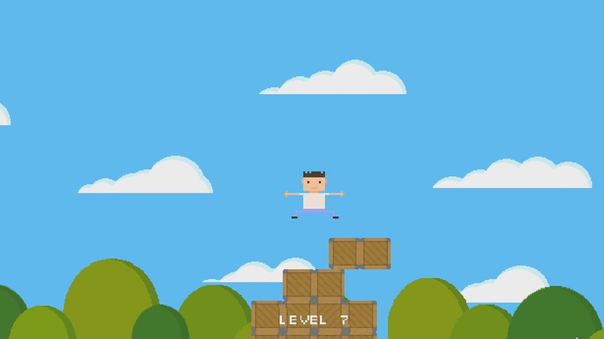 Super Jump Dude is an one button game. Click the mouse to jump and try to land on the crates. Also expect to see flying spikeballs, rockets and boomerangs.
