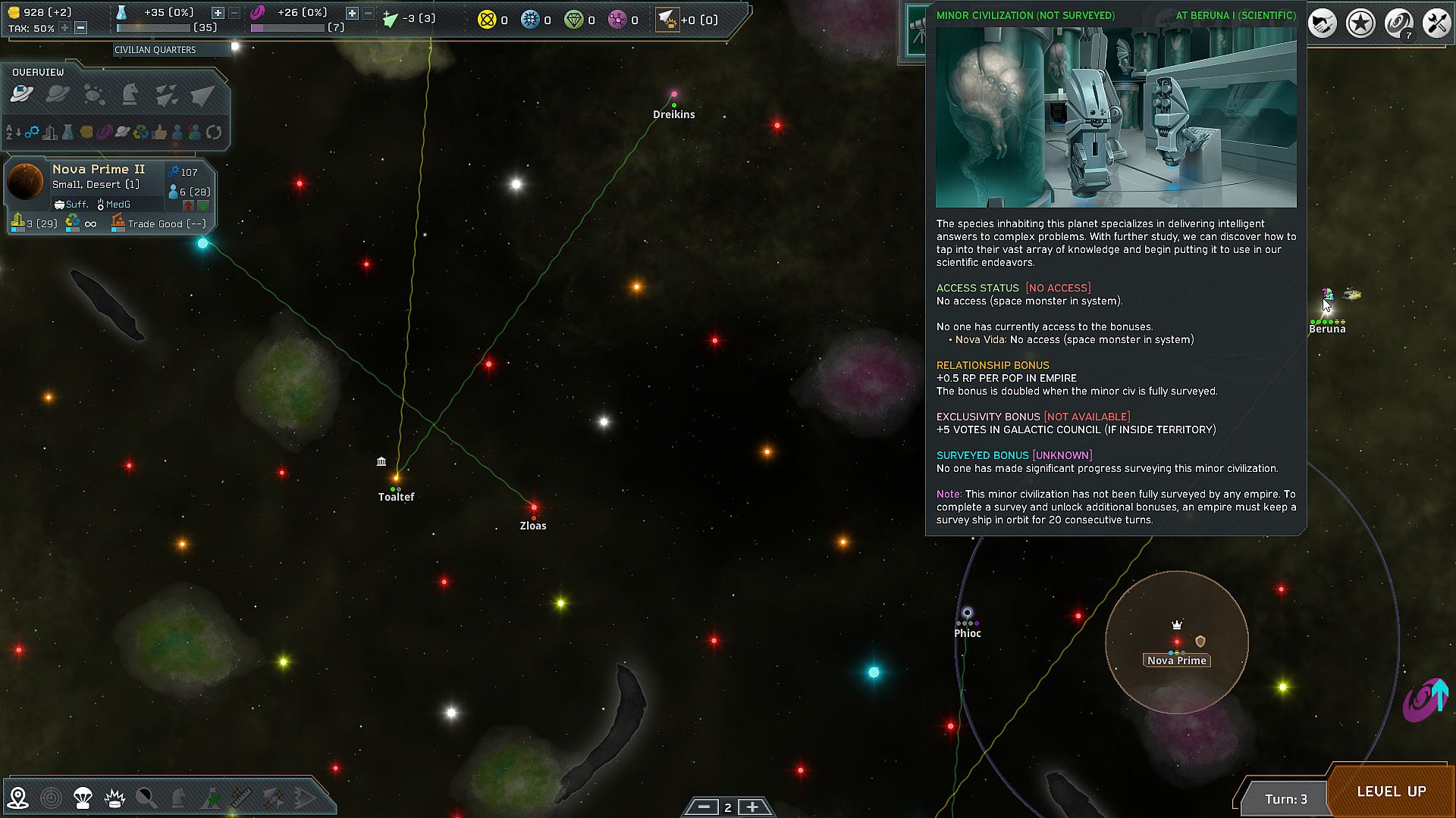 Minor Civilizations introduce a wide variety of pre-warp civilizations which are randomly spread throughout the galaxy waiting to be discovered. While finding them is hard, earning their trust is even harder, and those who wish to reap the benefits of a deeper relationship with them will need to spend time understanding who they truly are. You’ll need to be quick though, such powerful bonuses are certain to attract attention, and you wouldn’t want such power falling into the wrong hands.