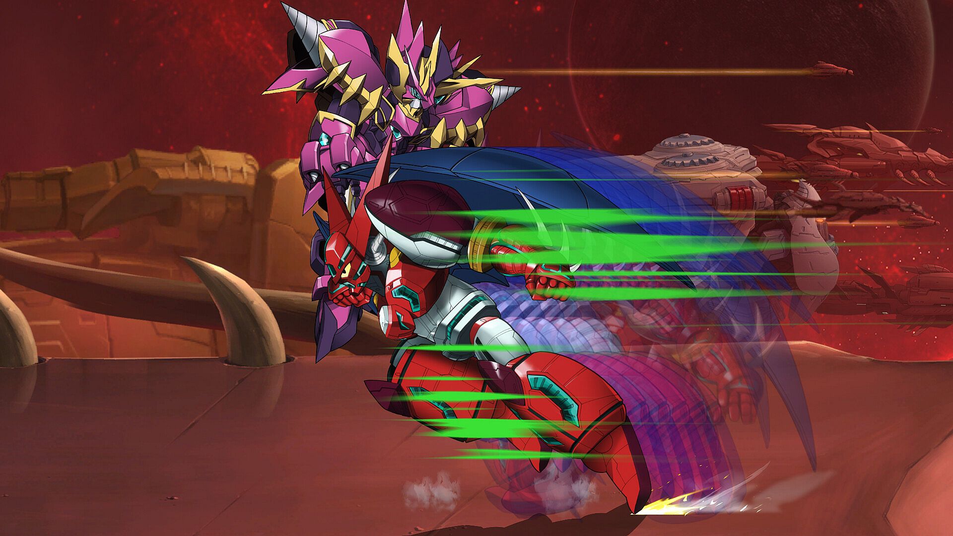 Unleash Shin Getter Robo, the ultimate Getter-series robot from Dr. Saotome, built to defend Shin Dragon with unmatched destructive force. Battle across the new Getter Fleet stage, a dimension-hopping armada that appears after Shin Getter Robo and Shin Getter Dragon fire the Shin Spark. Team up with them to charge toward a common fate, hearing the challenge: "Kept me waiting, Getter Team!"