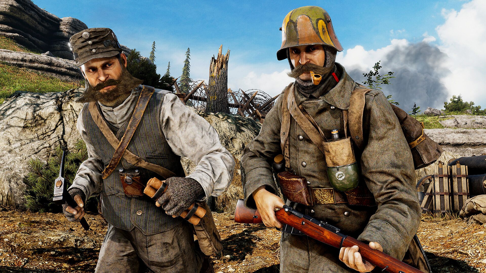 Austro-Hungarian uniforms include an assault troop laden with grenades, well-equipped loadouts and a seldom seen way of wearing the KuK's iconic greatcoat. The rifleman loadout showcases a large greatcoat with heavy equipment and some rare camouflage patterns seen on Austrian helmets. The engineer sports a sapper look, with satchels of TNT and just a shirt and waistcoat for the warm mines. The Generalmajor staff officer uniform is re-released with two headgear variations influenced by the Austrian commander Hotzendorf.