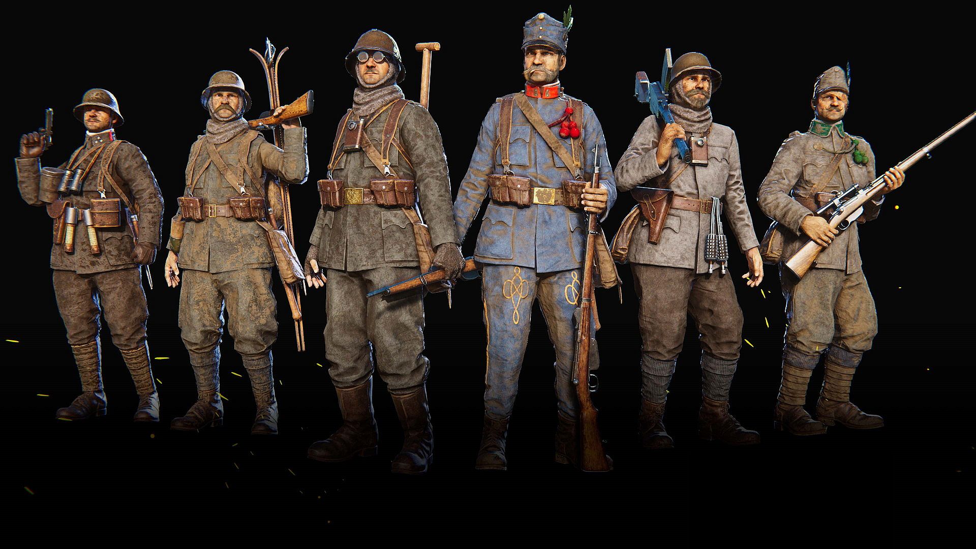 The Austro-Hungarians get the Hungarian Honved infantry uniform with Hungarian inscriptions and embroidery, as well as their "feldkappe". The other uniforms included are grimy, battle-worn and carrying gear appropriate to experienced trench fighters. For the Assault class a light summer tunic is available as well.