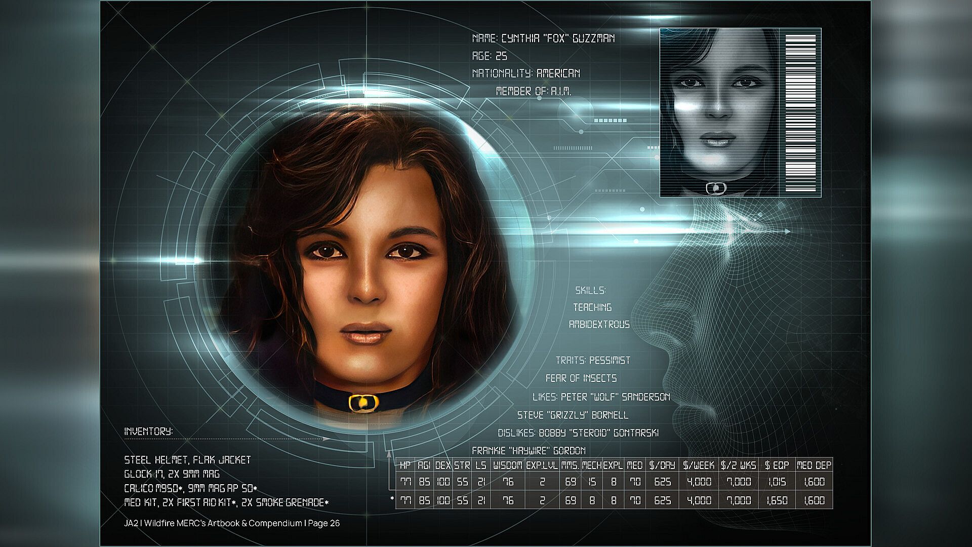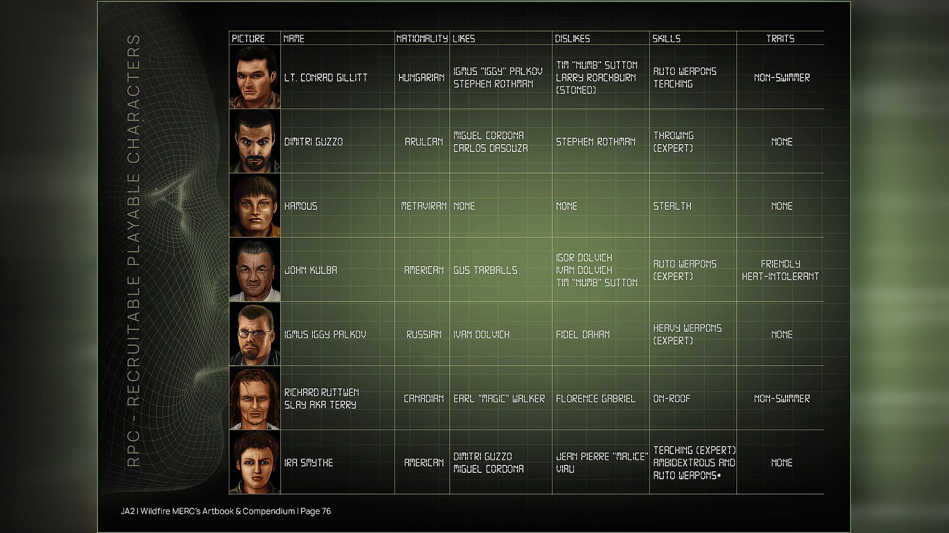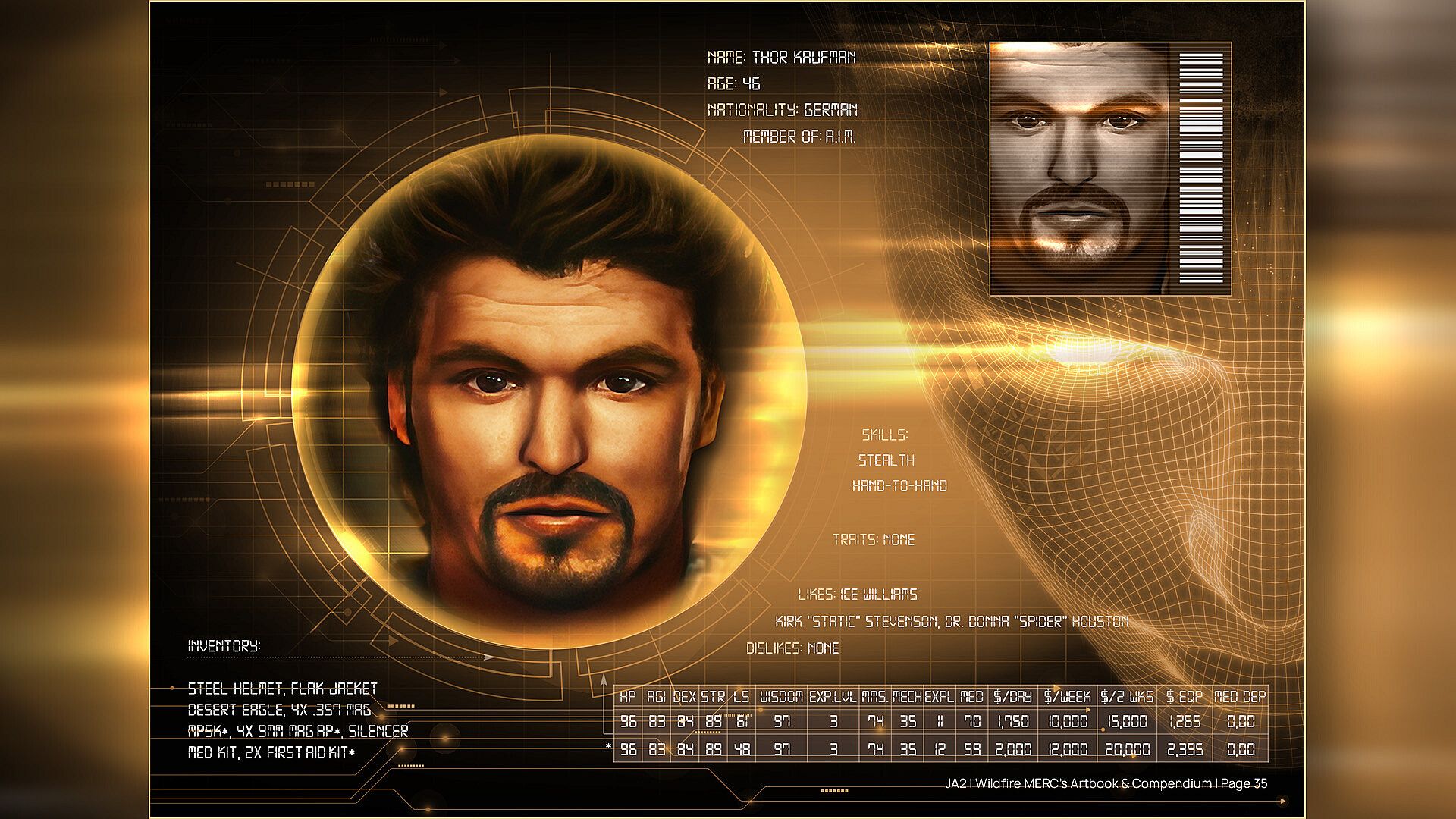The Mercenaries Artbook & Compendium brings together the most striking artistic impressions and mercs information and stats of the game, giving you a fabulously entertaining trip into the wonderful world of “Jagged Alliance ll and Wildfire“!