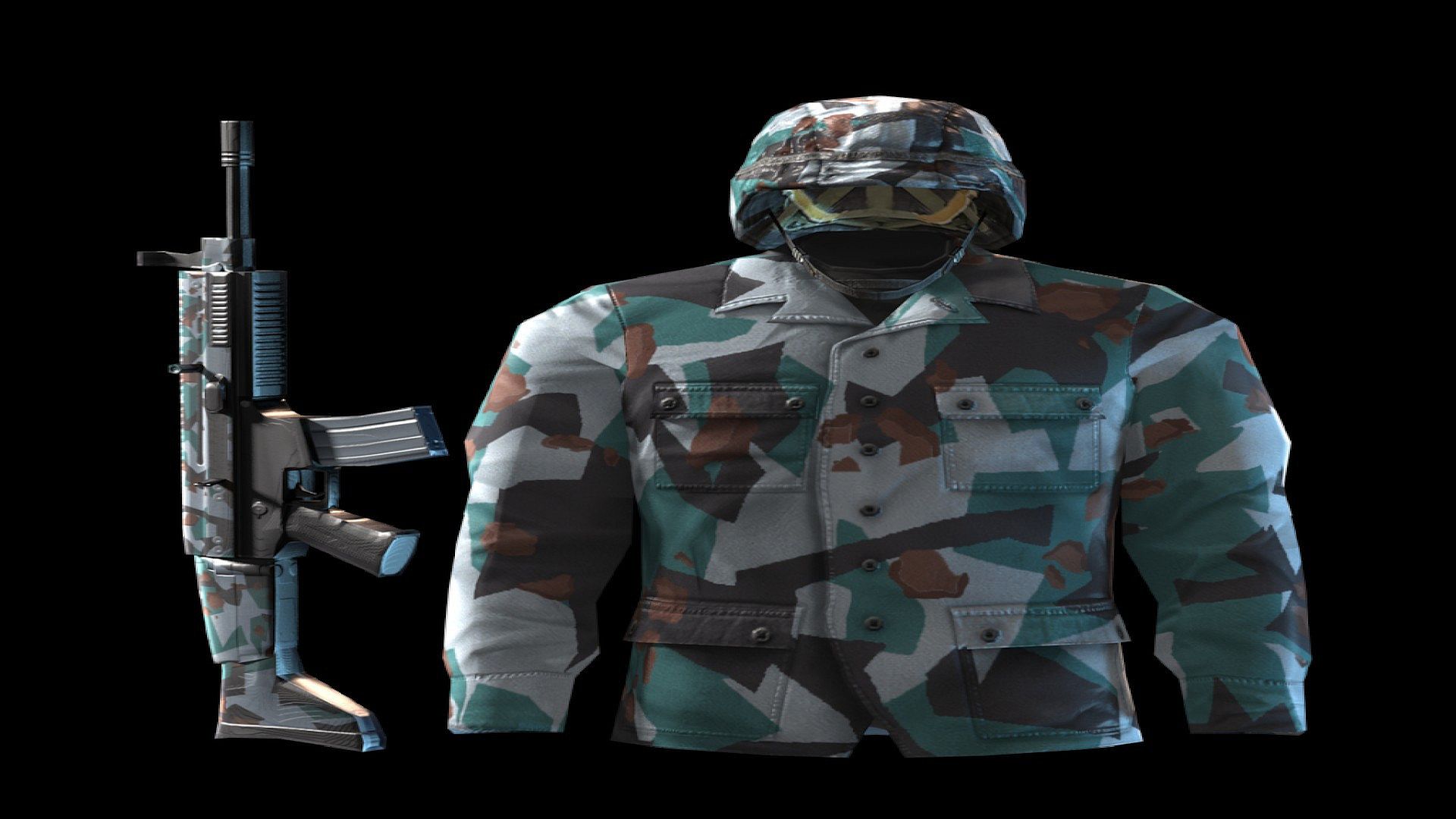 - Military dress-shirt: Long-sleeved shirt, hiding scars and tattoos under well-sewn fair-trade cotton. It comes in a special urban camouflage pattern and is perfect for both household and combat situations.