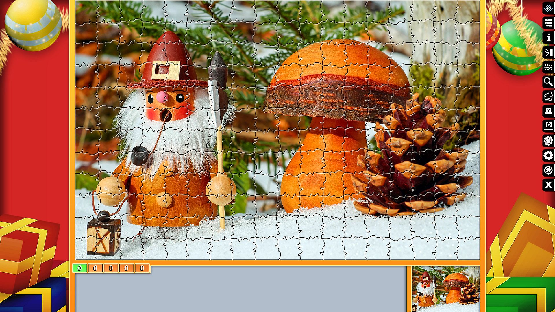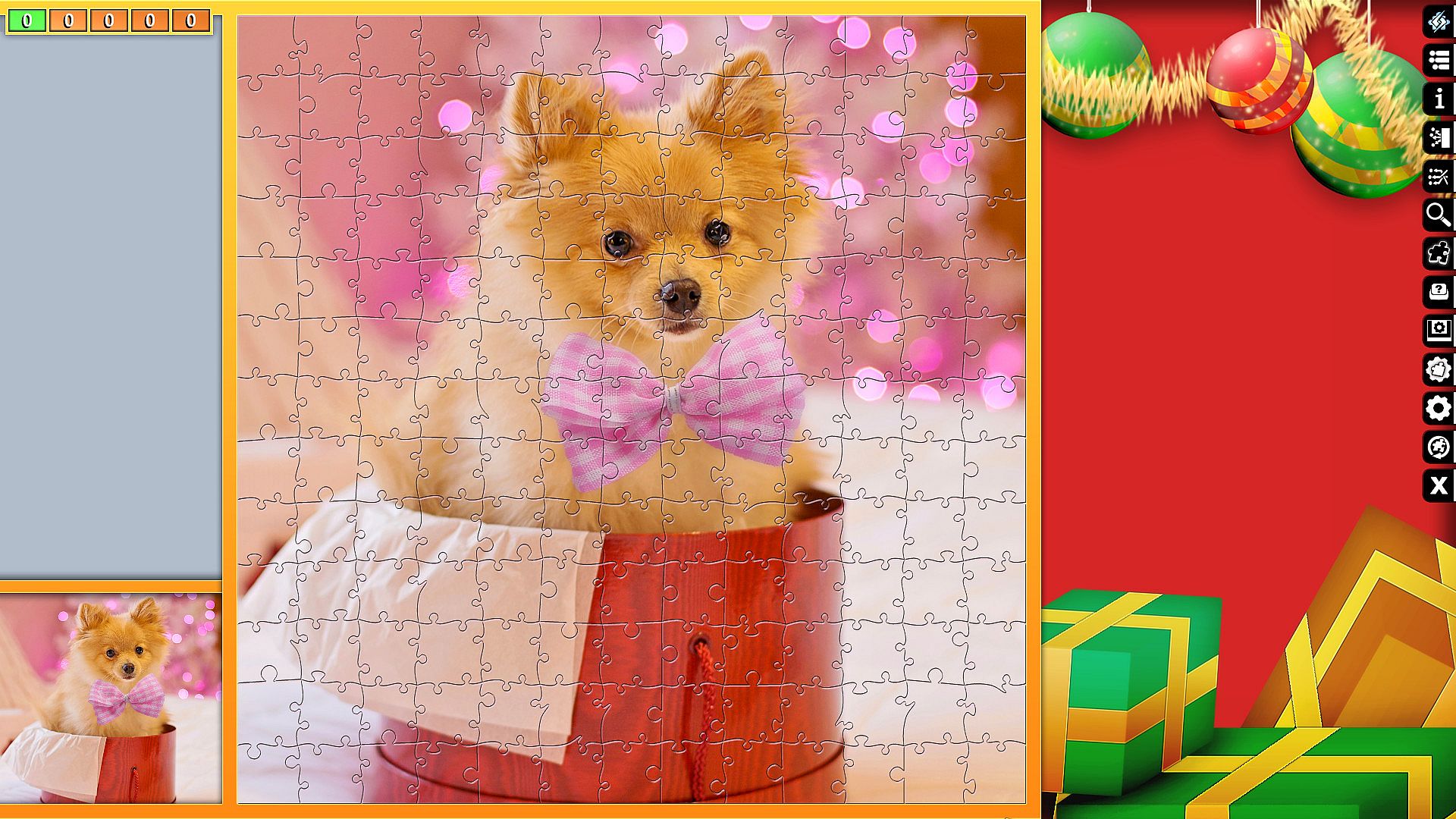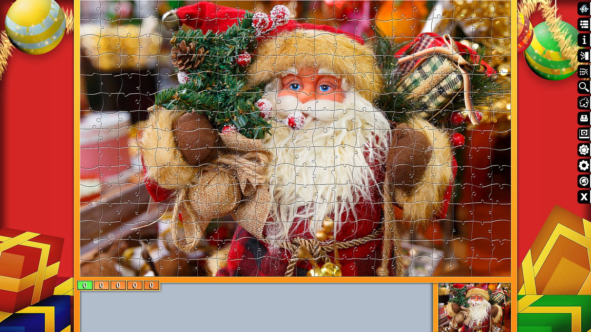 Pixel Puzzles Ultimate delivers a focused jigsaw puzzler on PC with 18 Christmas-themed puzzles totaling 3034 pieces. Assemble images of Santa Claus, Christmas trees, gifts, and festive scenes like hot chocolate, cookies, and snow. Each puzzle varies in size, from 96 pieces for candles or baking to 330 for shopping or Santa Claus. This casual simulation offers straightforward puzzle assembly for relaxed play sessions. Players piece together holiday motifs such as advent calendars, cinnamon stars, and chihuahuas in winter attire. It suits fans of indie strategy puzzlers seeking simple, thematic challenges without complex rules.