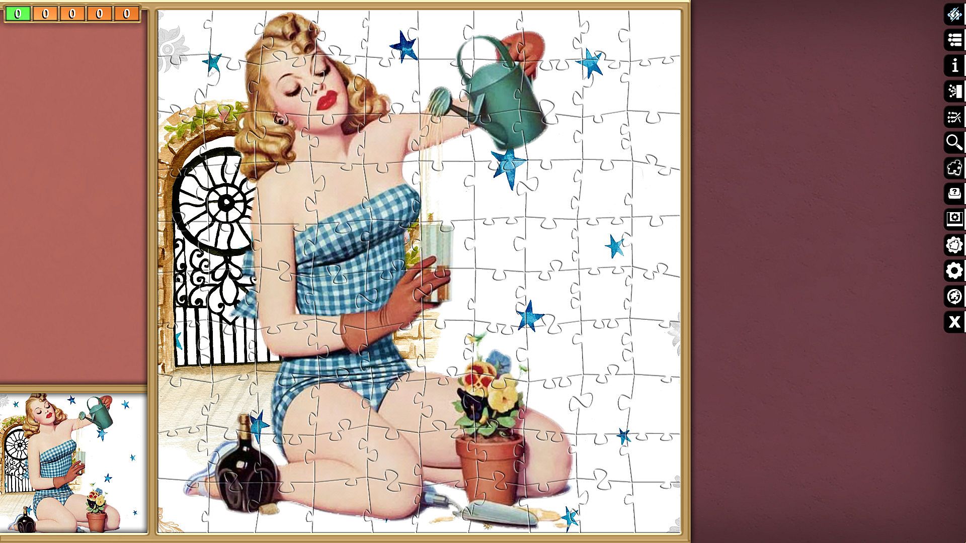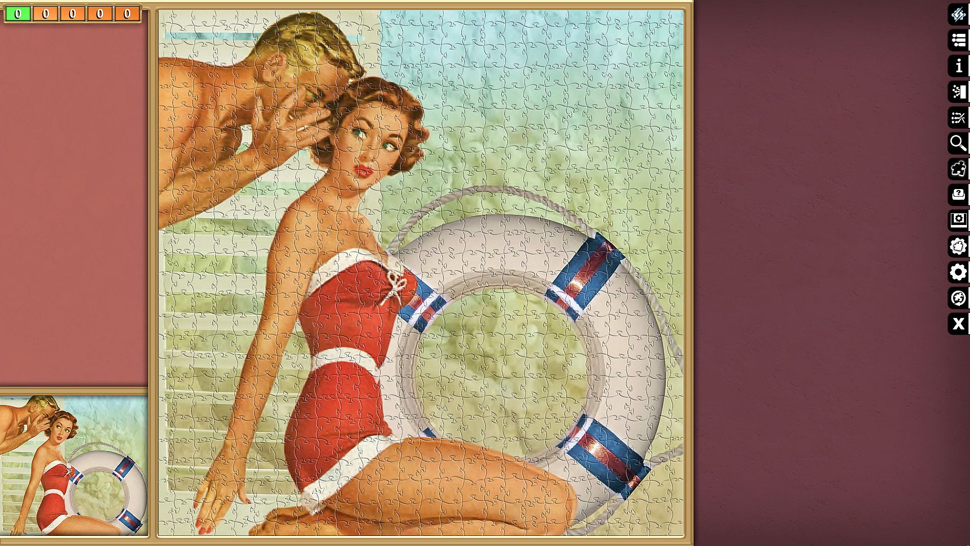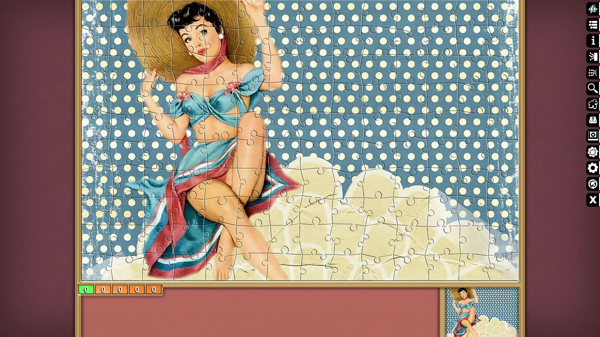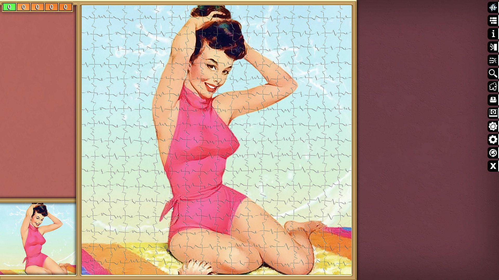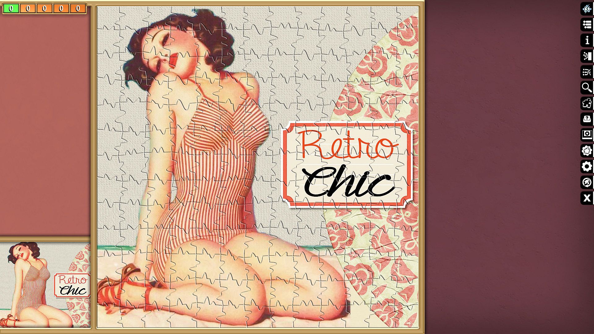 Pixel Puzzles Ultimate delivers a focused jigsaw puzzler on PC with this Pin-Ups collection. It packs 15 puzzles totaling 4813 pieces across varied images like cars, swimsuits, beaches, and retro motifs. Players piece together each one, from compact 100-piece designs to expansive 676-piece challenges. This casual simulation offers indie-style puzzle assembly for relaxed sessions. Strategy comes in sorting and placing pieces to complete vivid pin-up scenes. It suits fans of straightforward, piece-by-piece puzzle building who enjoy free-to-play variety on PC.