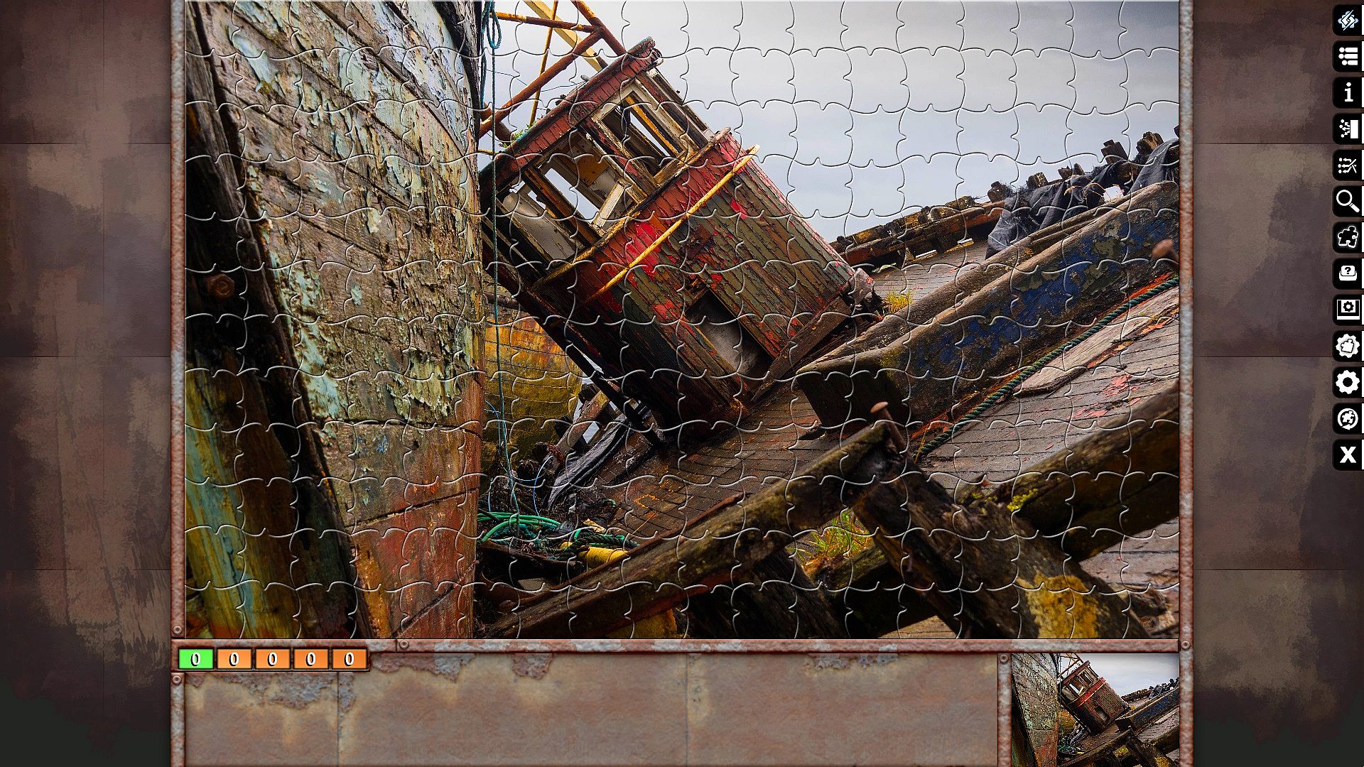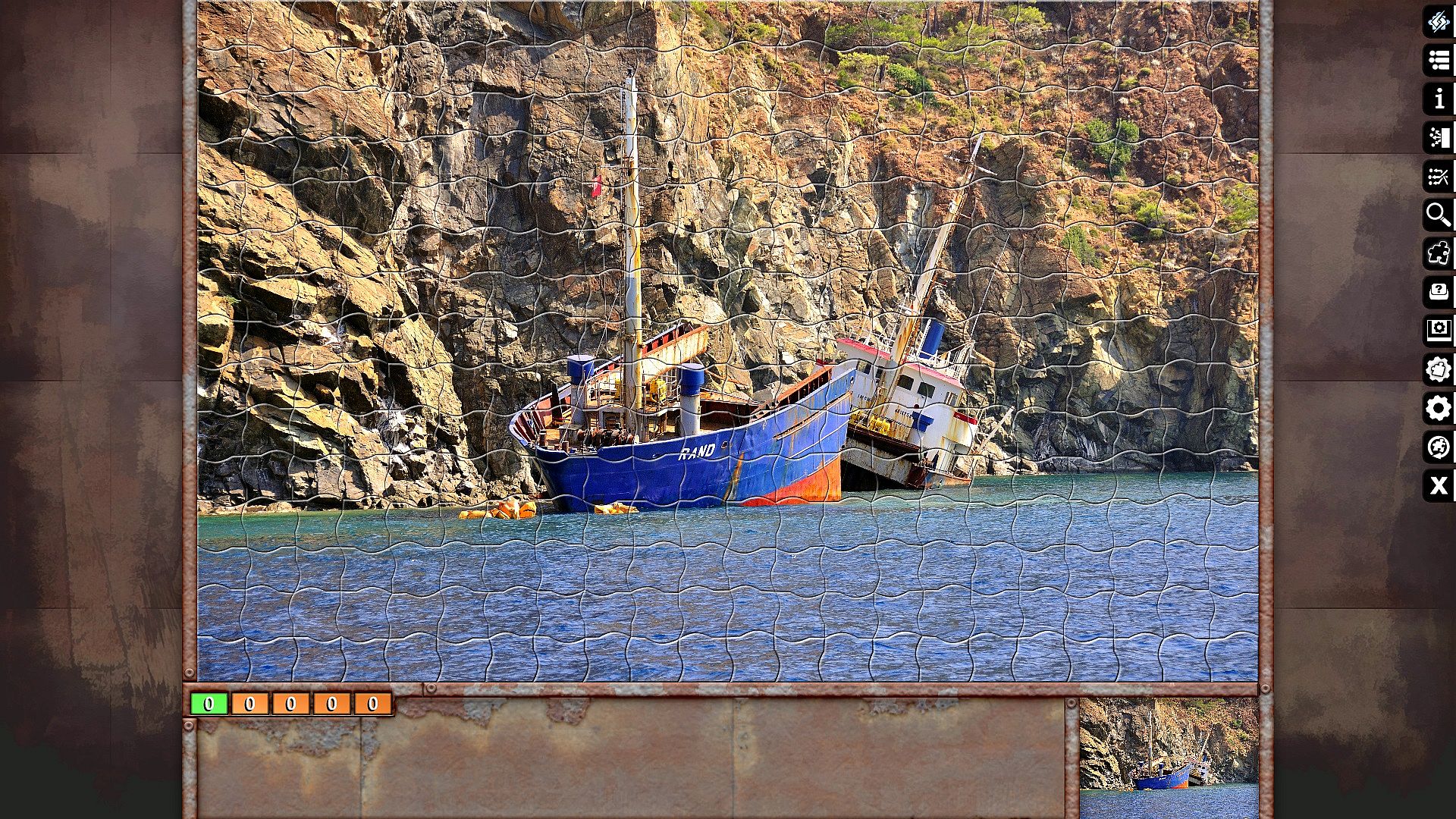 Pixel Puzzles Ultimate delivers a focused jigsaw puzzler on PC with 14 shipwreck-themed puzzles totaling 3977 pieces. Assemble detailed images of sunken wrecks, flooded hulls, rusted remains, ice-trapped vessels, and stranded boats like the Titanic or Concordia. Each puzzle challenges you to fit pieces precisely, from smaller sets like Stranded at 153 pieces to larger ones like Rusted Hull at 425. This casual simulation suits puzzle enthusiasts who enjoy methodical piece placement and high piece counts. Free-to-play indie design keeps sessions flexible for quick solves or extended builds. Strategy comes from planning piece connections across varied shipwreck scenes.