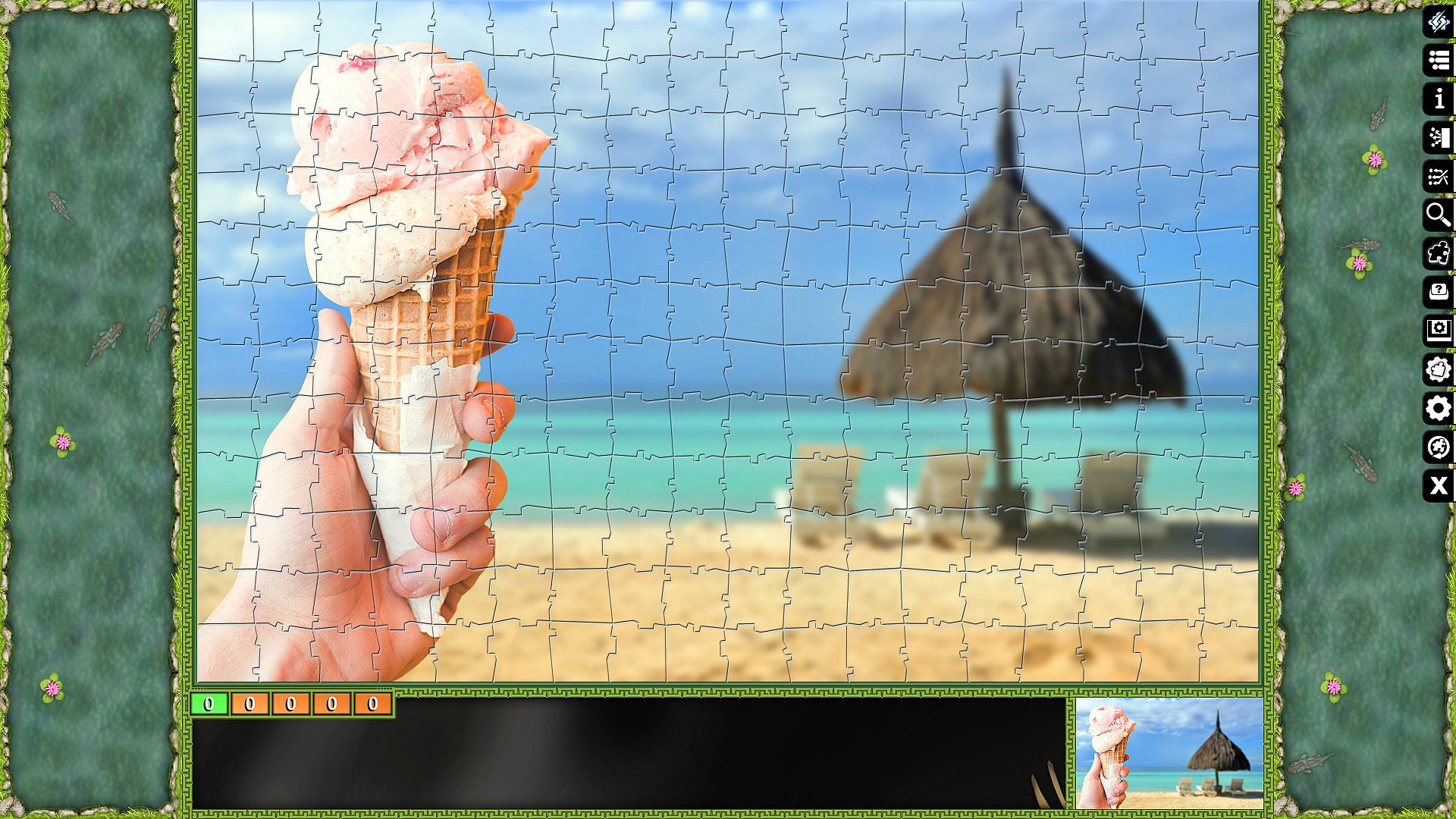 Pixel Puzzles Ultimate delivers a focused jigsaw puzzler on PC with 12 summertime-themed images. Assemble detailed scenes like deer in fields, vibrant sunflowers, and relaxing palm trees using a total of 3595 pieces across varied piece counts from 140 to 640. Each puzzle captures casual outdoor moments, from sea shores and splashing water to ice cream treats and buzzing bees. This casual simulation suits players who enjoy methodical piece placement in short sessions. Strategy comes from fitting pixels precisely into summery landscapes like meditating figures and exploring paths. Free-to-play indie fans find steady value in the straightforward assembly loop.