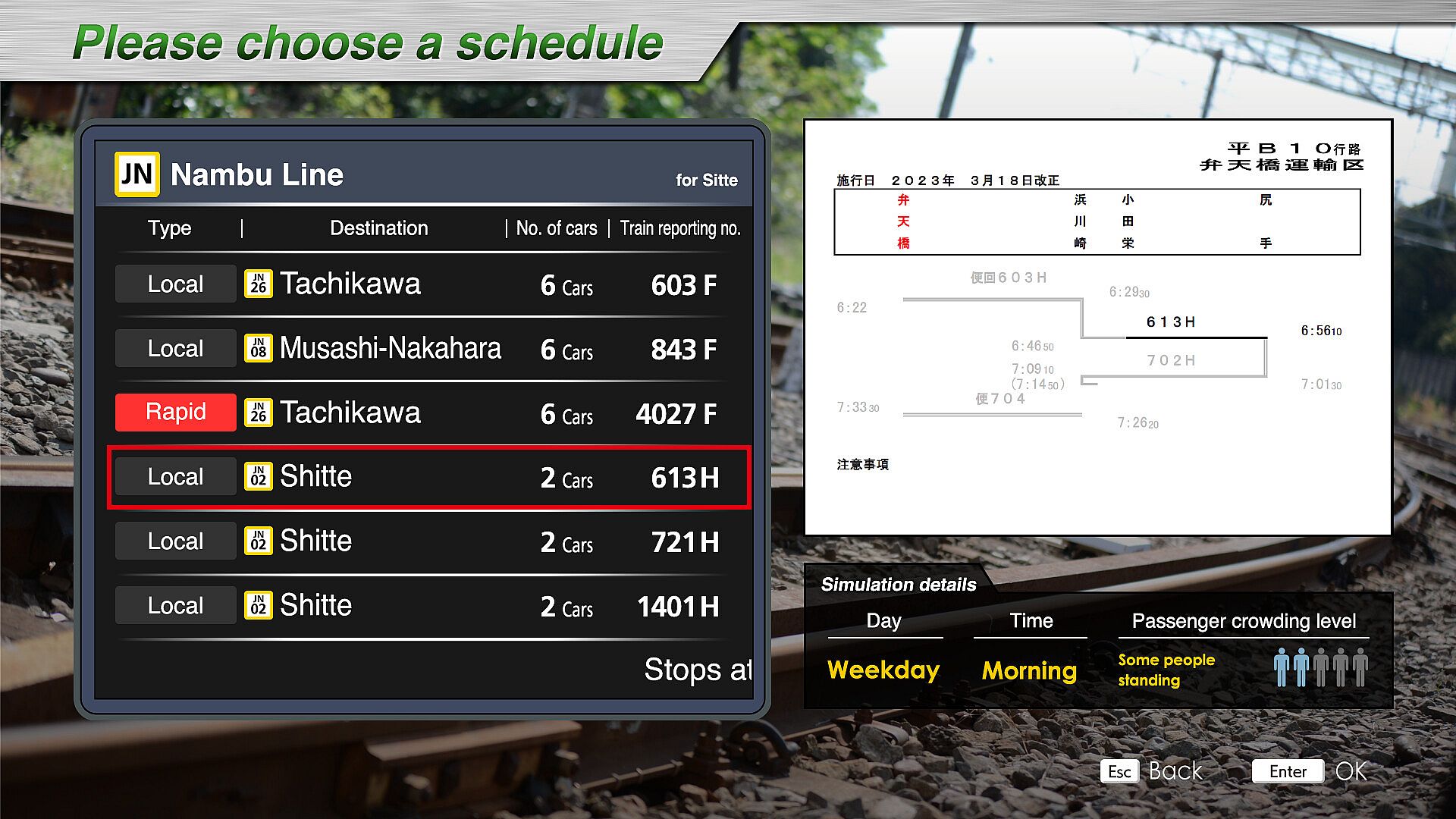 - Type/Destination: Local train to Tachikawa