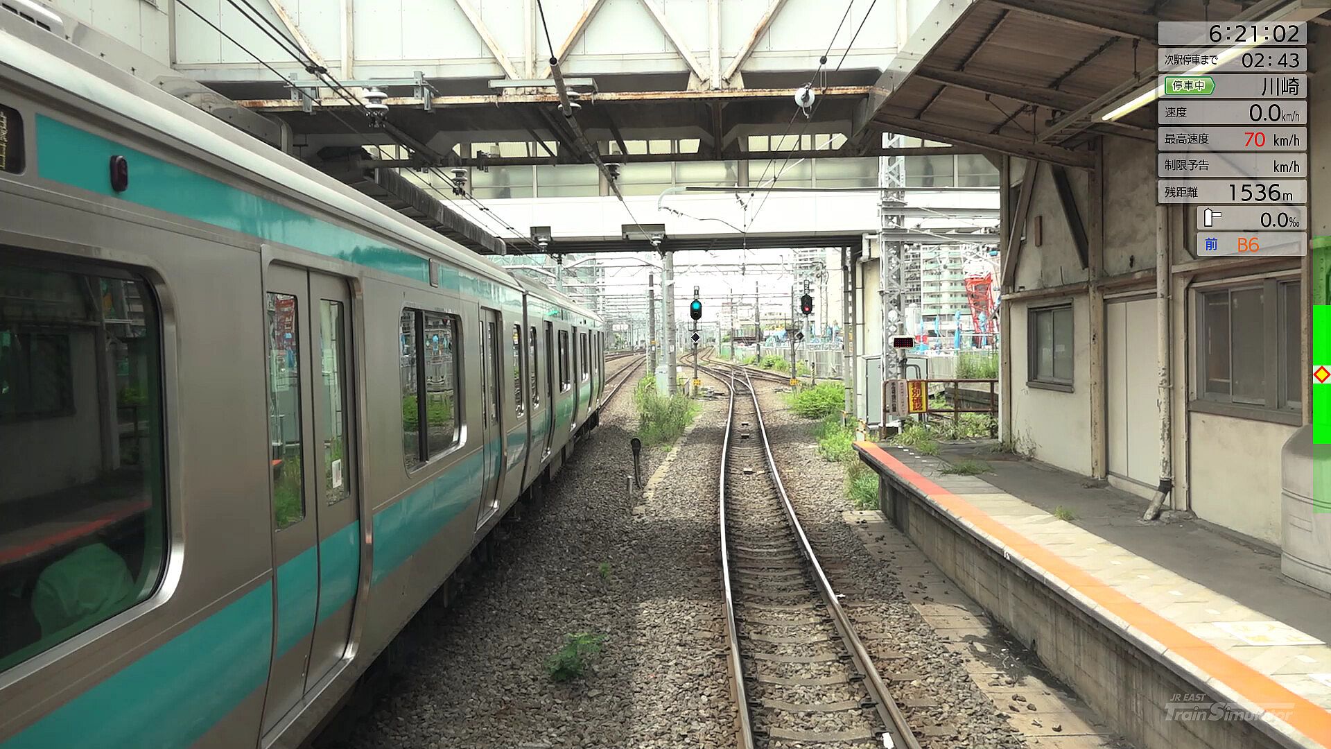 The train runs parallel to the Tokaido Line and the Keihin-Tohoku Line, but makes a sharp right curve and separates from both lines. - Merge with Nambu Branch Line/Kawasaki Station - Shitte Station