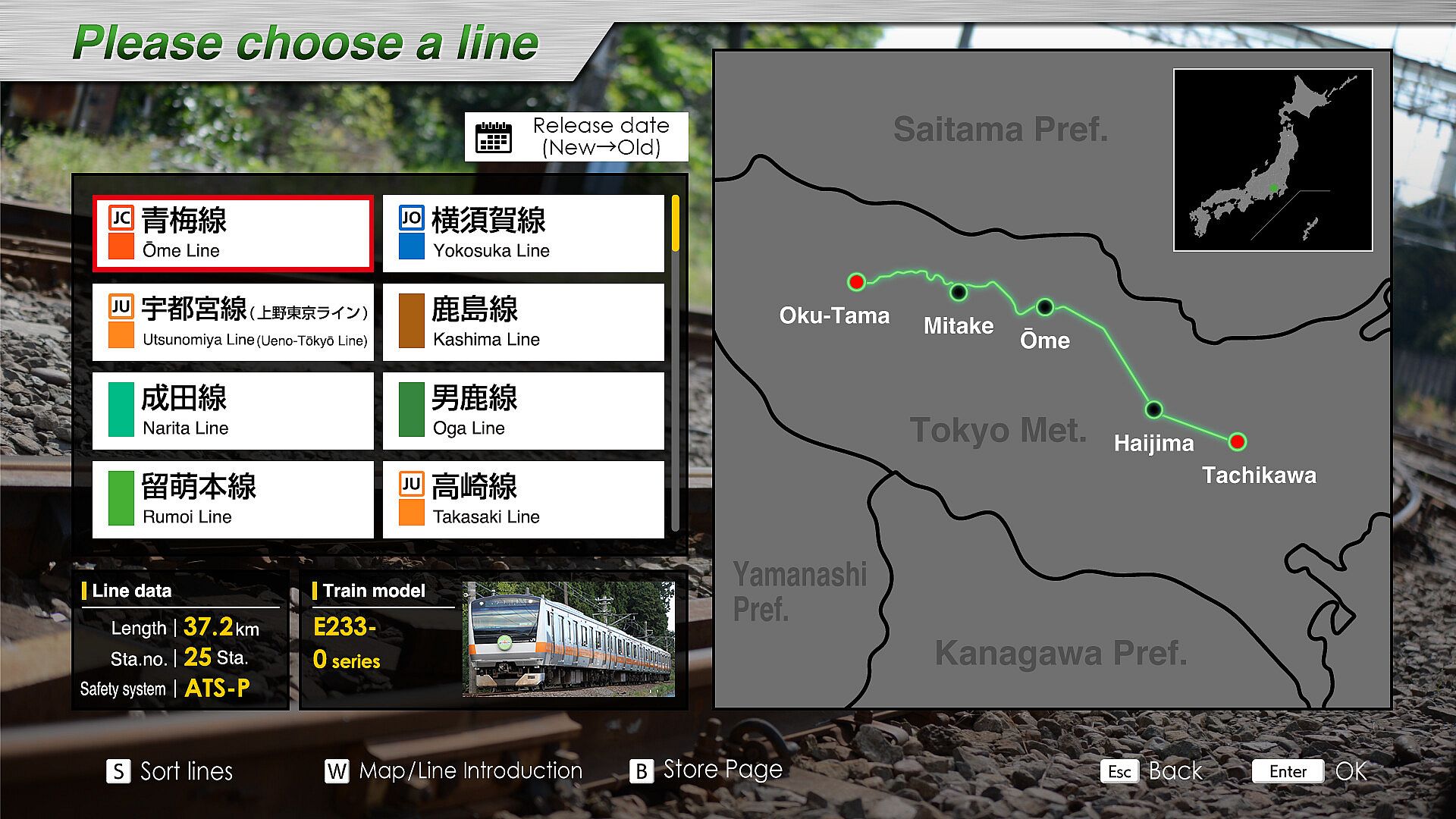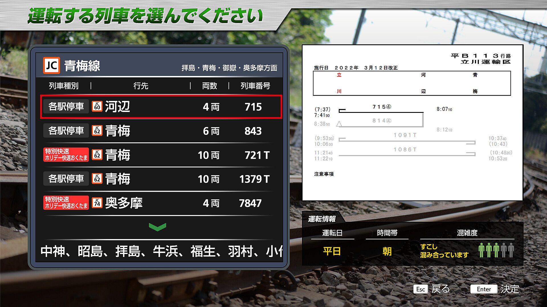 - Section where you can drive: Tachikawa(13:30)→Ōme(13:59)