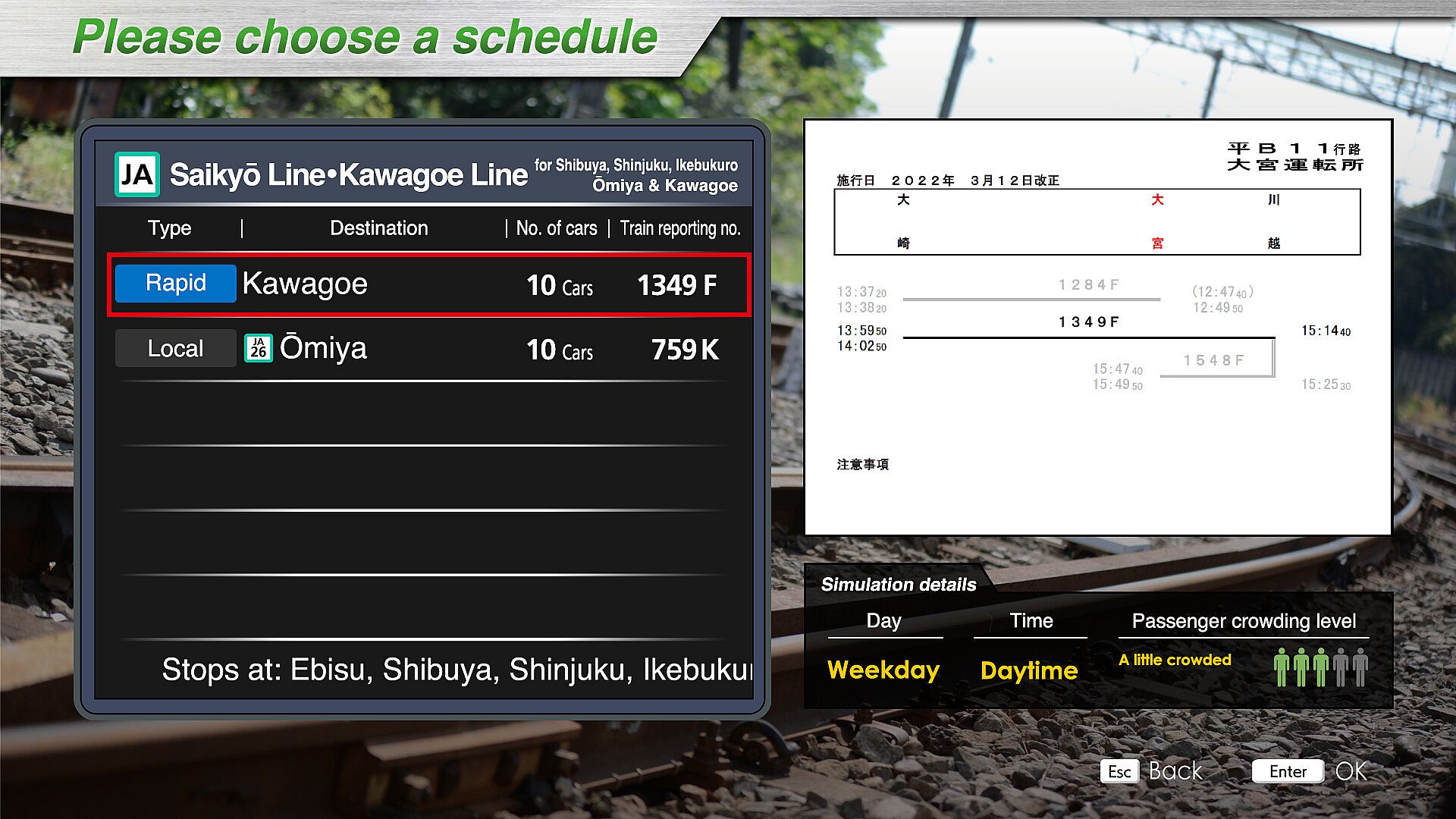 - Station section that can be operated: Osaki(14:02) to Kawagoe(15:14)