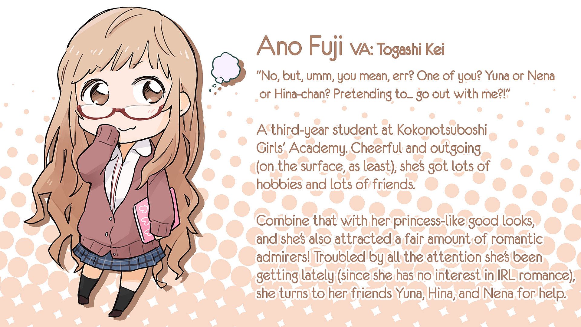Yuna and Nena are helping her out, but itβs starting to wear on Ano having her fans follow her all the way home. So when Hina suggests a βFake Couple Strategyβ...