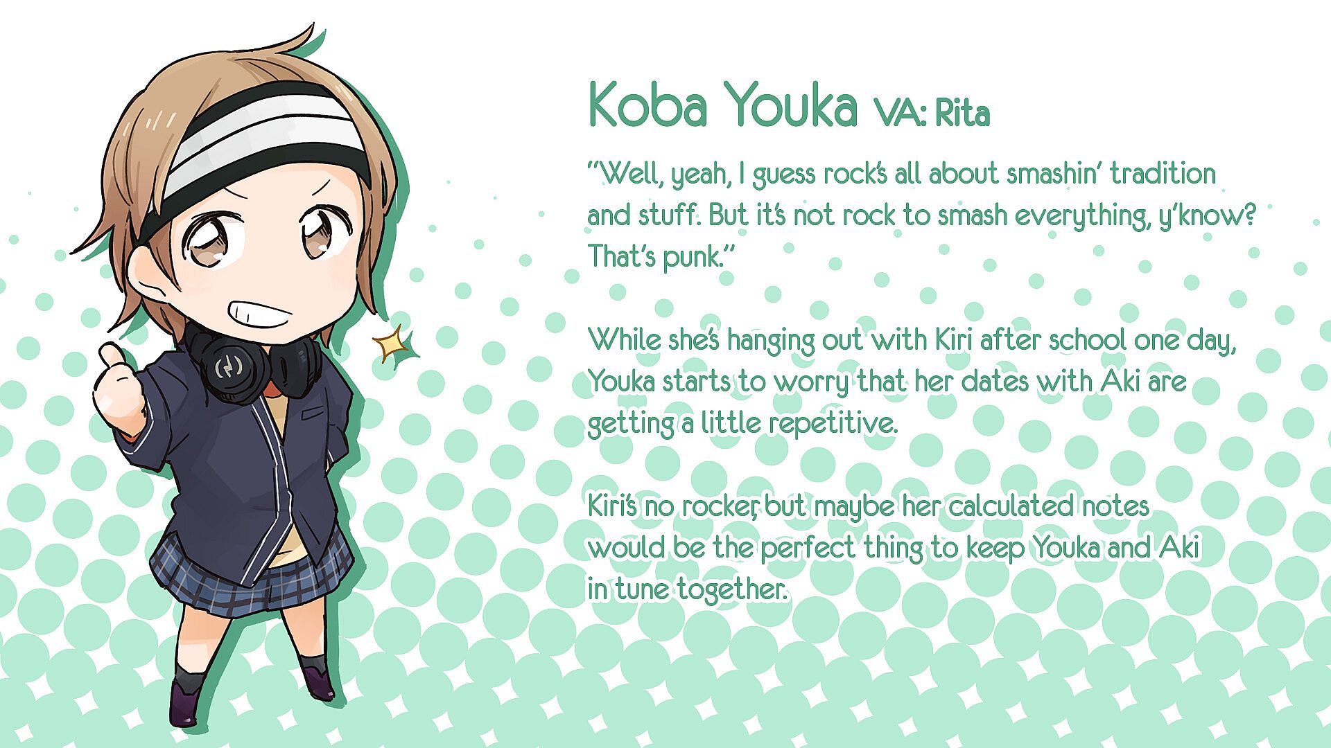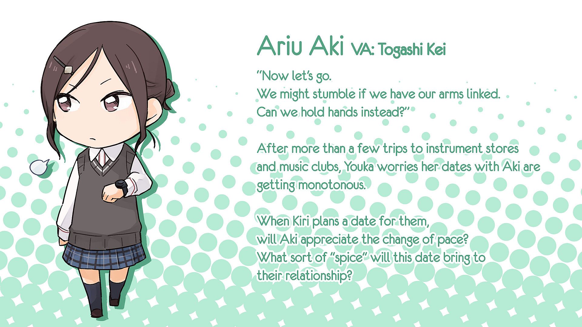 Tsurugimine Kiri and Koba Youka are both enjoying every day with their lovers. But at some point they realize their dates are getting a little repetitive and start to worry. When the two of them give it some thought, they decide to each plan a date for the other.