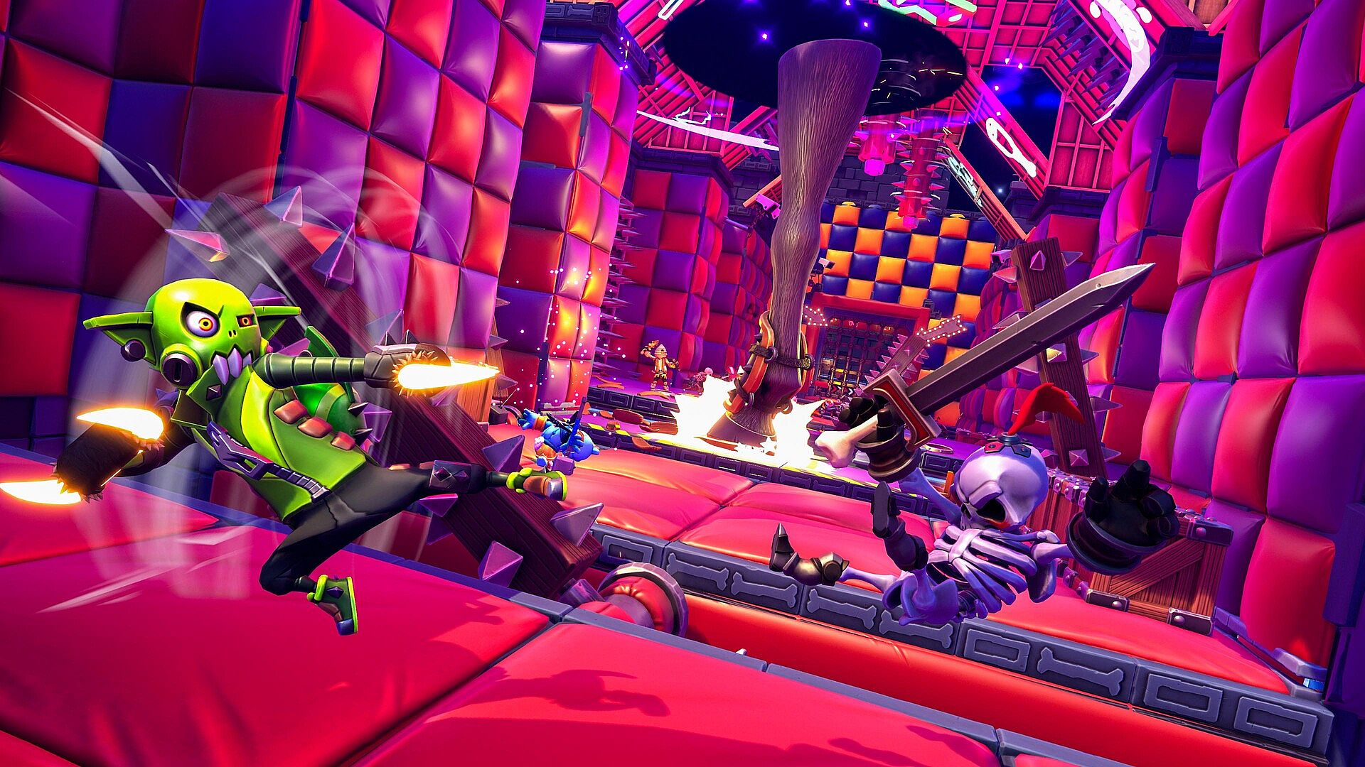 Compete in a co-op party platformer, pitting up to 4 players against official and community-built devious dungeons filled with puzzles to solve, challenges to traverse, and ridiculous monsters to fight. Progress through chaotic dungeons to unlock new abilities and gear on your way to becoming the ultimate contender!