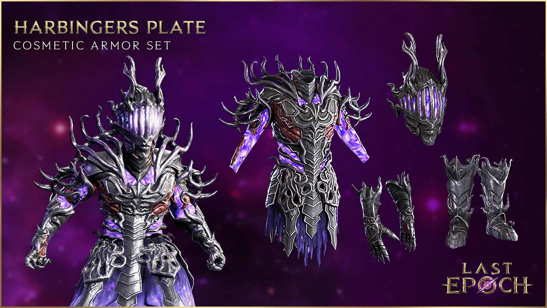 Stolen from the bodies of slain foes, protect yourself with the Harbinger's Plate cosmetic armor set.Voidbringer's Cloak