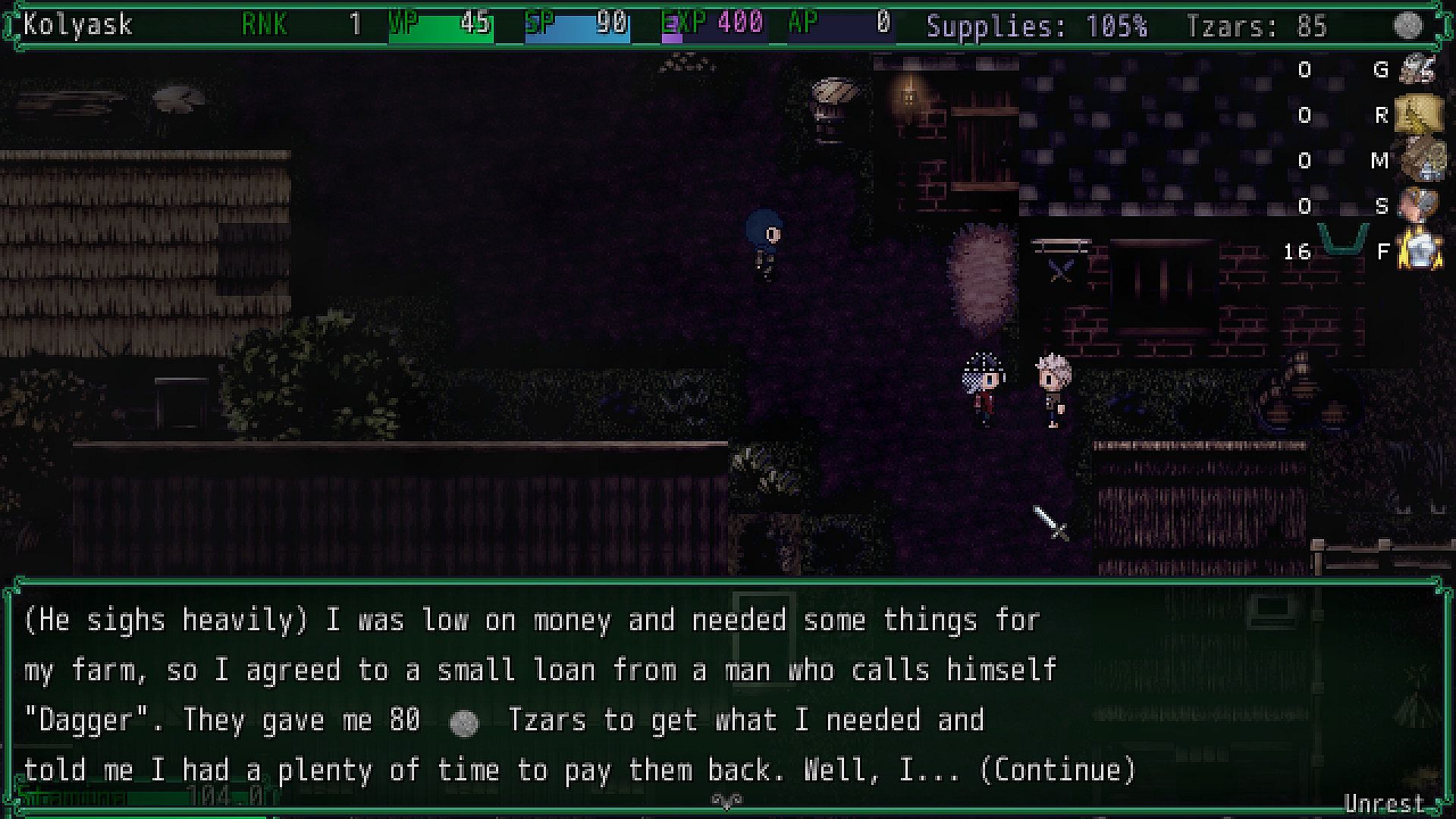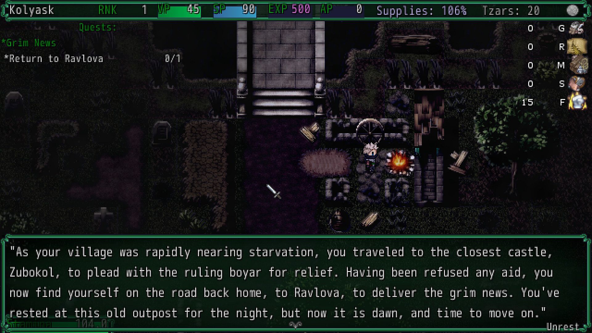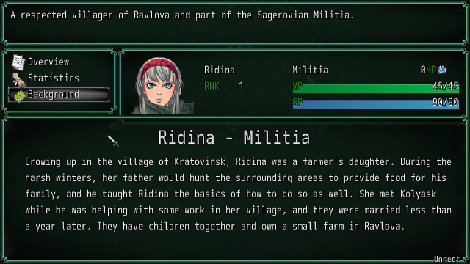 "The Devil's Harvest, 347... It began as only harrowing rumors from abroad, but a foul blight has come and infected most of the crops throughout the Sagerovian countryside. Following its arrival, a plague struck down nearly everyone in its path, leaving the survivors to clean up the mess of their fallen society... With the armies off, fighting in the war against Stothlheim, Sagerov is left scarcely defended and outlying settlements are helpless, and prime targets for callous invaders... An old and all-but-forgotten foe, hailing from the eastern steppes, the Horde has set its sights on the lonely farms and plague-weakened villages, leaving nothing but smoke, bodies, and ash, in their wake... Among those villages, Ravlova, resting in the Strastobol region, is a small and insignificant farming community, where people work from dawn till dusk, just to earn even a meager living. Two in particular are a husband and wife, Kolyask and Ridina, who're local farmers with a family, but they're also part of their village's militia. Charged with protecting their land and their neighbors, they are the last line of defense... This is their story..."