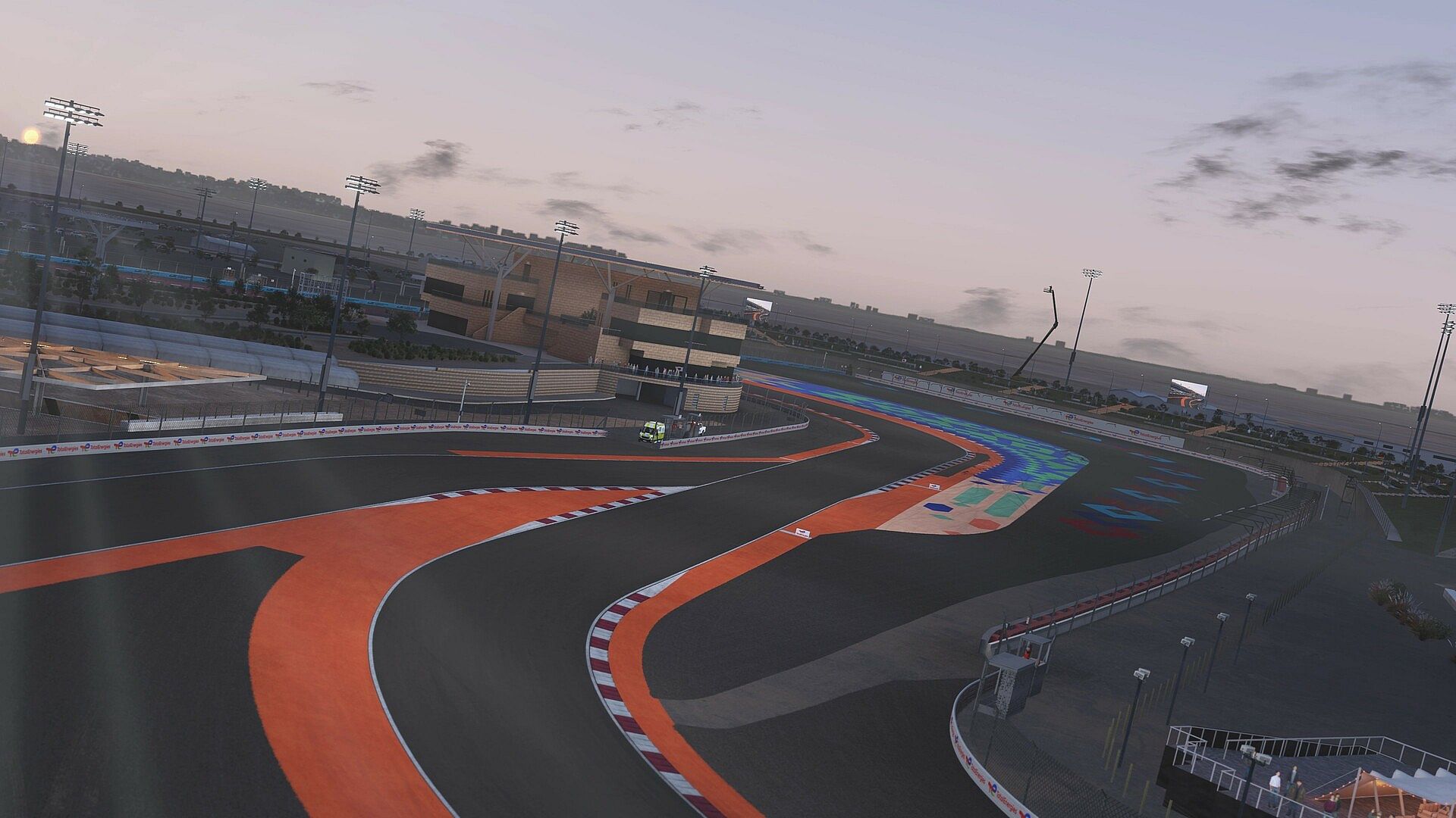 Lusail International Circuit (LIC), located on the outskirts of Doha, Qatar, is a premier motorsports venue renowned for hosting top-tier events such as Formula 1, MotoGP, and the FIA World Endurance Championship (WEC). The circuit spans 5.38 km and features 16 turns, offering multiple configurations including the Full GP Circuit, Fast Loop, and Academy Loop to accommodate various events & races - both the GP and short Academy loop will be replicated in LMU.