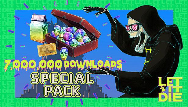 As of our last update (we refresh Steam pricing multiple times a day), the LET IT DIE -(7 Mil Downloads)Special pack- Steam price is $9.99. You can save an extra ~6% by paying with a discounted Steam gift card.