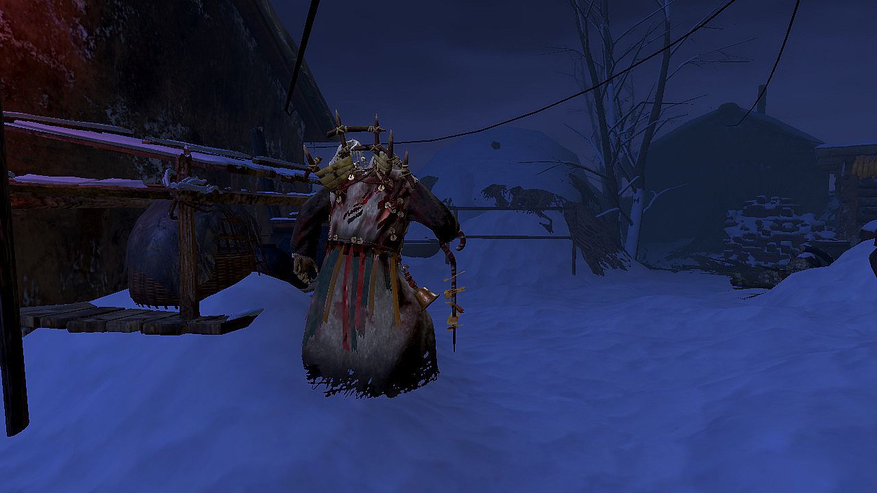神婆野神祭礼服装DLC,包含一个青蚨套装:野神祭礼。东北巫萨在祭野神和请野仙时,会庄重的穿戴祭服,画图腾,焚符纸。他们深信这样的仪式能加深与灵魂间的联系。